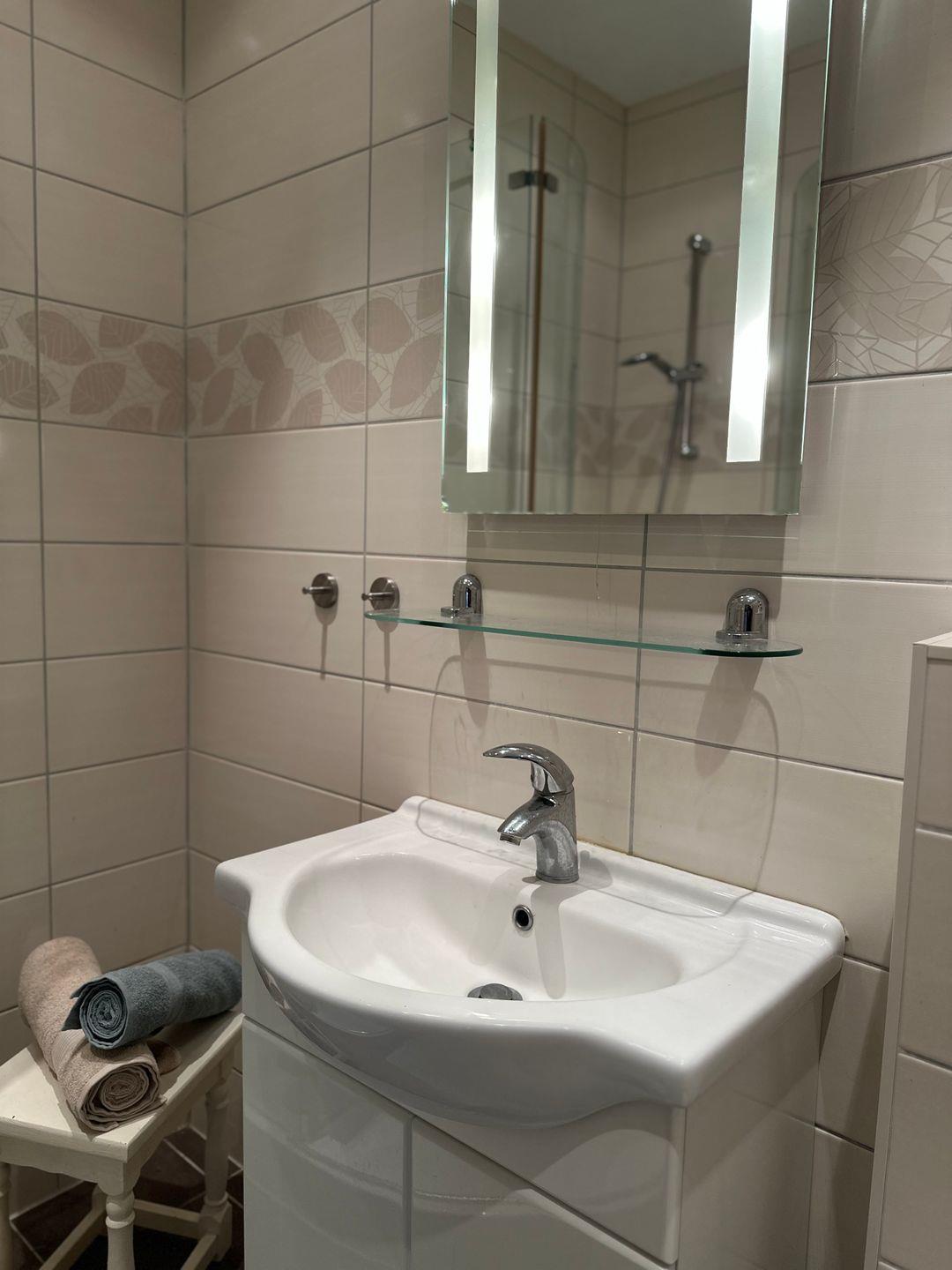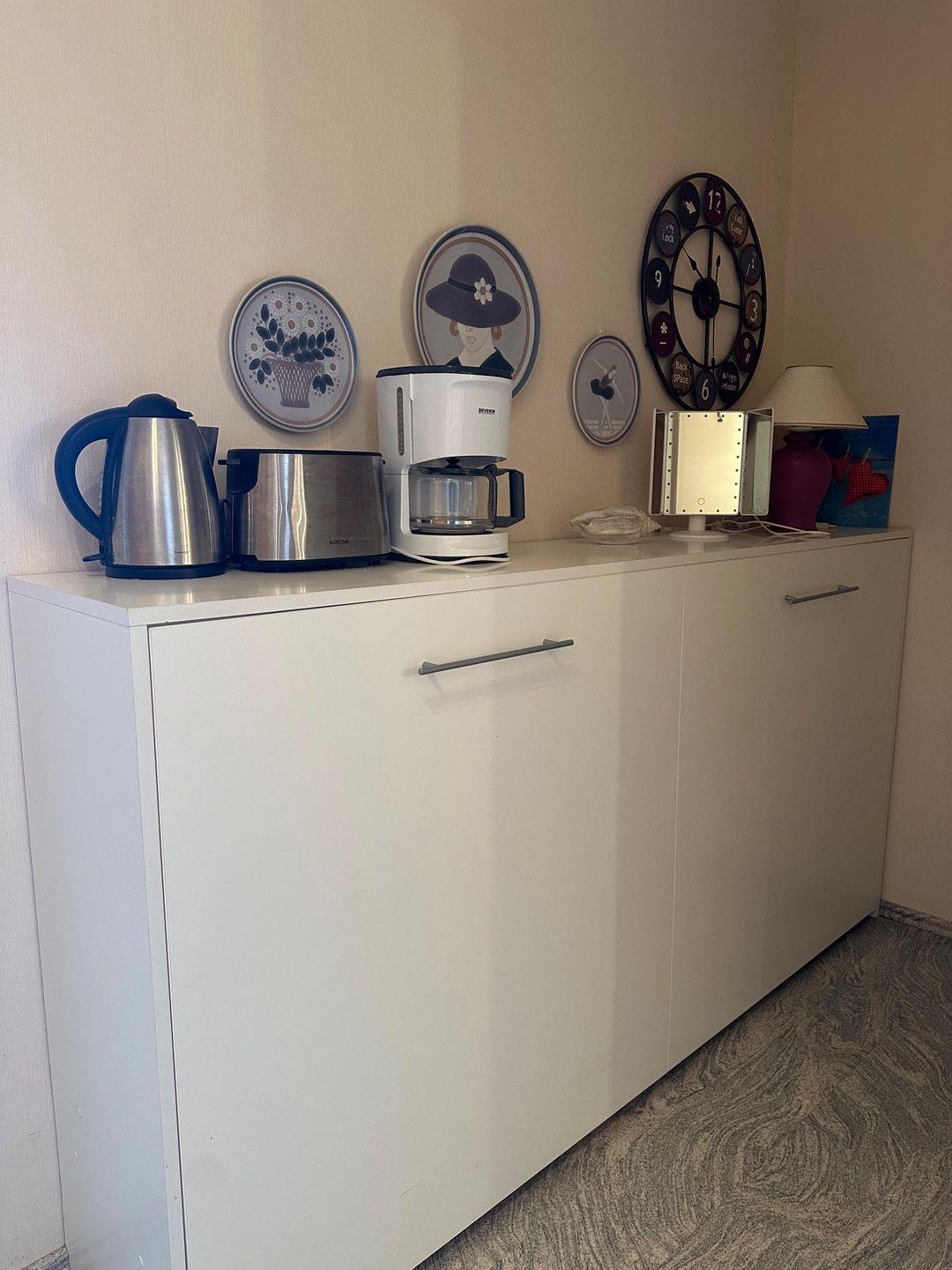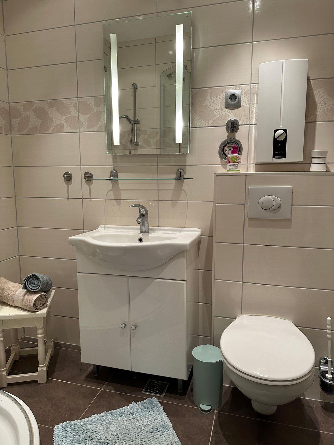 Hier passt alles zusammen, alles ist aufeinander abgestimmt, die Ausstattung ist hochwertig. Die Pantry ist vom Wohn- und Schlafbereich getrennt. Sie ist ausgestattet mit einer Mikrowelle, Kühlschrank mit Gefrierfach. Das hell geflieste Bad mit Dusche und WC runden die Ferienwohnung ab. Ihren PKW können Sie direkt vorm Haus parken.