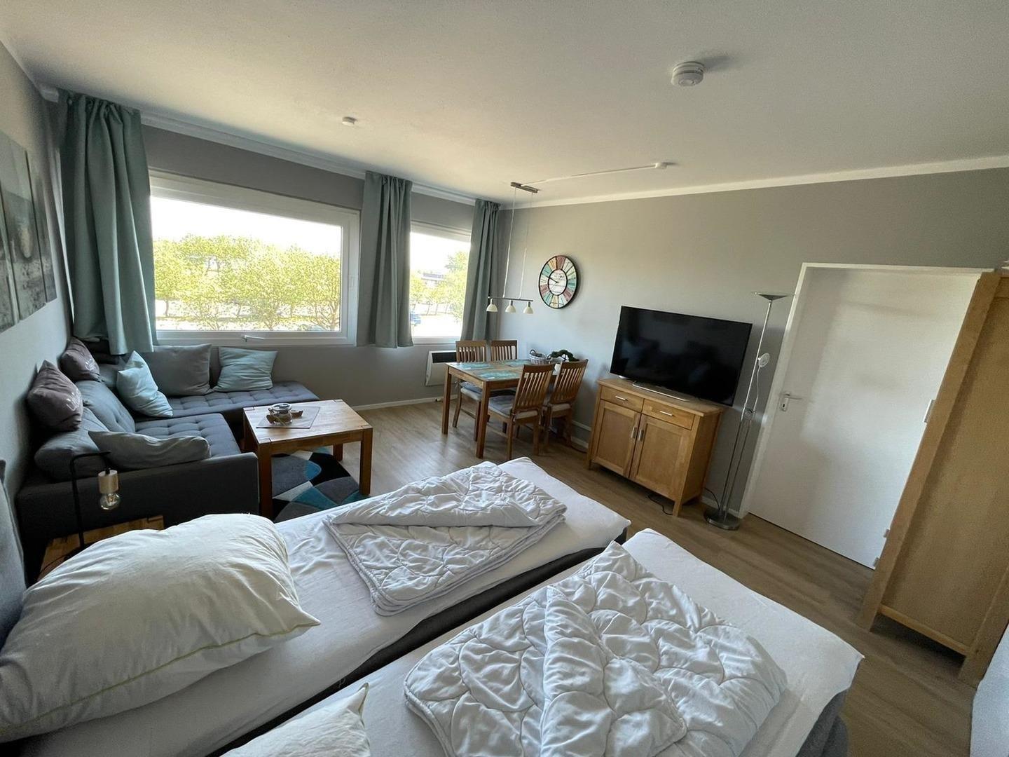 Herzlich willkommen in unserem Appartment "Kaptitänleutnant"., direkt am Südstrand mit Blick auf den Yachthafen.