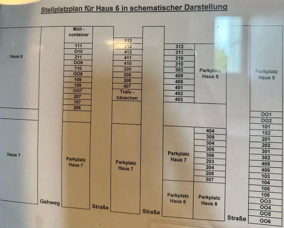 dem Haus, auf einem zugeordneten Parkplatz, abstellen.