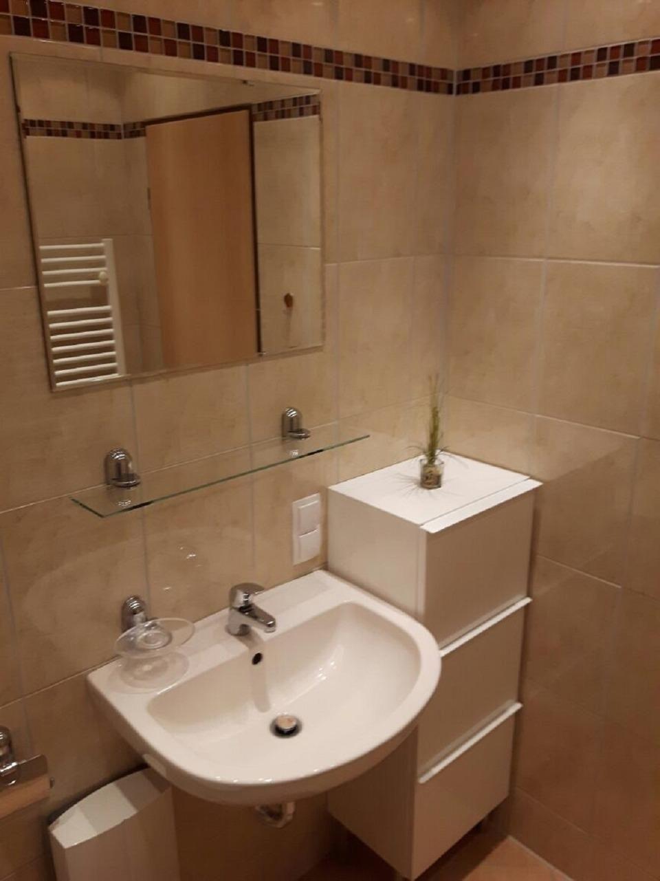 Das renovierte Bad bietet WC, Dusche, Waschbecken und einen Schrank für Ihre Toilettenartikel.