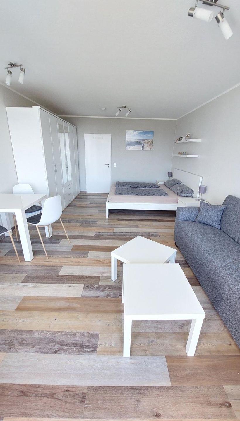 Das Appartement "Seestern" ist für 3 bis 4 Personen ausgestattet. Der großzügig gestaltete Wohn- und Schlafraum ist mit einem integrierten Essbereich, einem komfortablen Doppelbett (180*200 cm), einem großem Schlafsofa, einer Fernsehecke und einem Kleiderschrank - der viel Platz bietet -, sowie einer großen Fensterfront mit Zugang zum Südbalkon ausgestattet. Die Wohnung ist sehr gepflegt und hochwertig ausgestattet. Sie ist sehr liebevoll eingerichtet, hier stimmt alles.