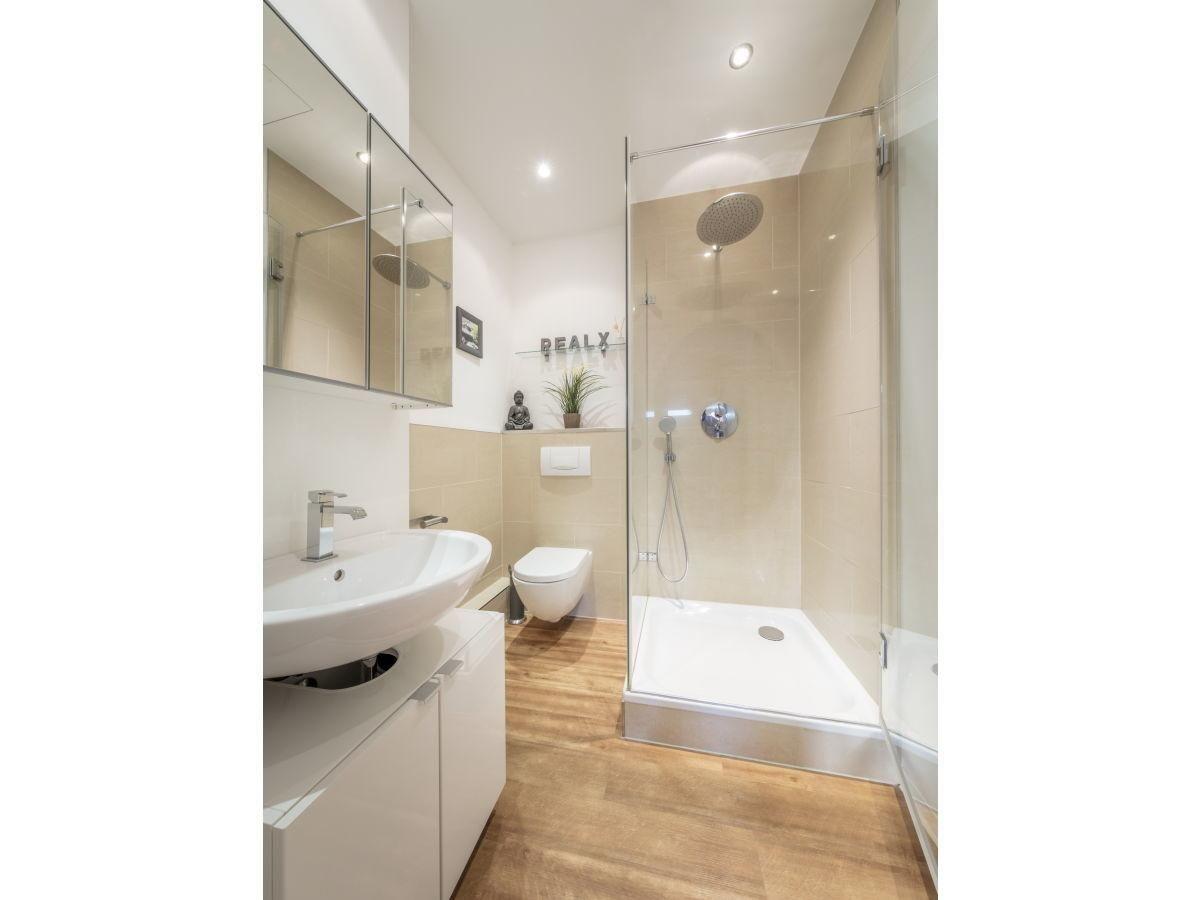 Das Bad verfügt über WC, Waschbecken, Dusche und Haartrockner.