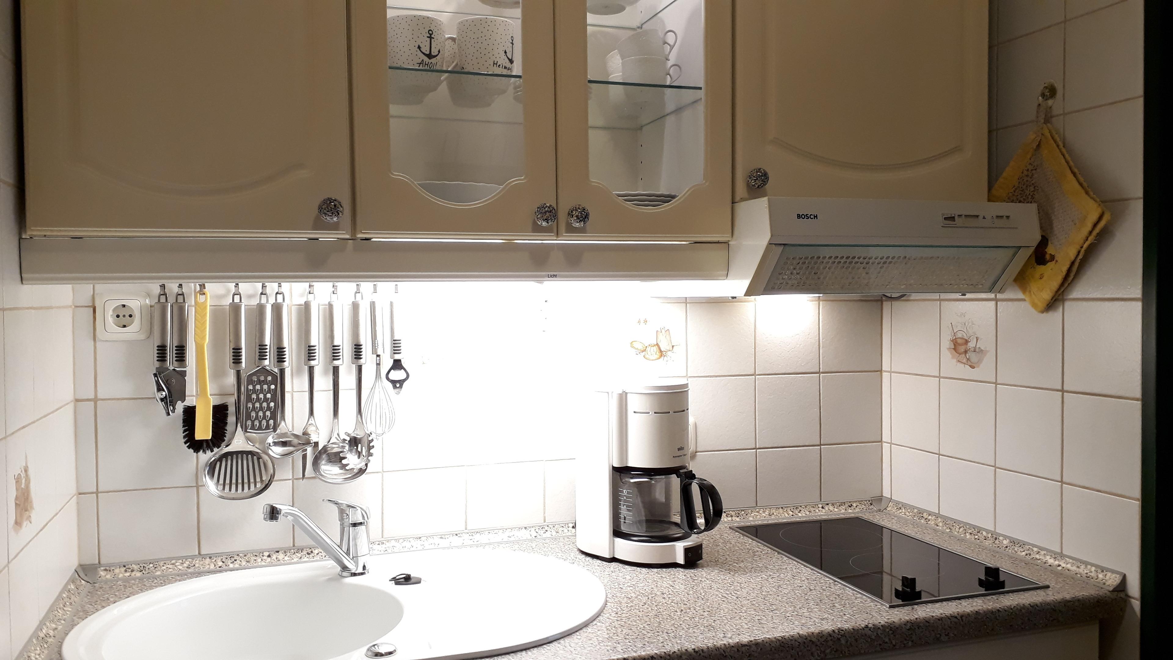 - In der Küche ist von Kaffeemaschine (inkl. Filtertüten), Kaffeepadmaschine, Wasserkocher, Eierkocher, Toaster und Thermoskanne bis zu Gewürzen, Geschirrspülmittel und Geschirrtüchern alles vorhanden.