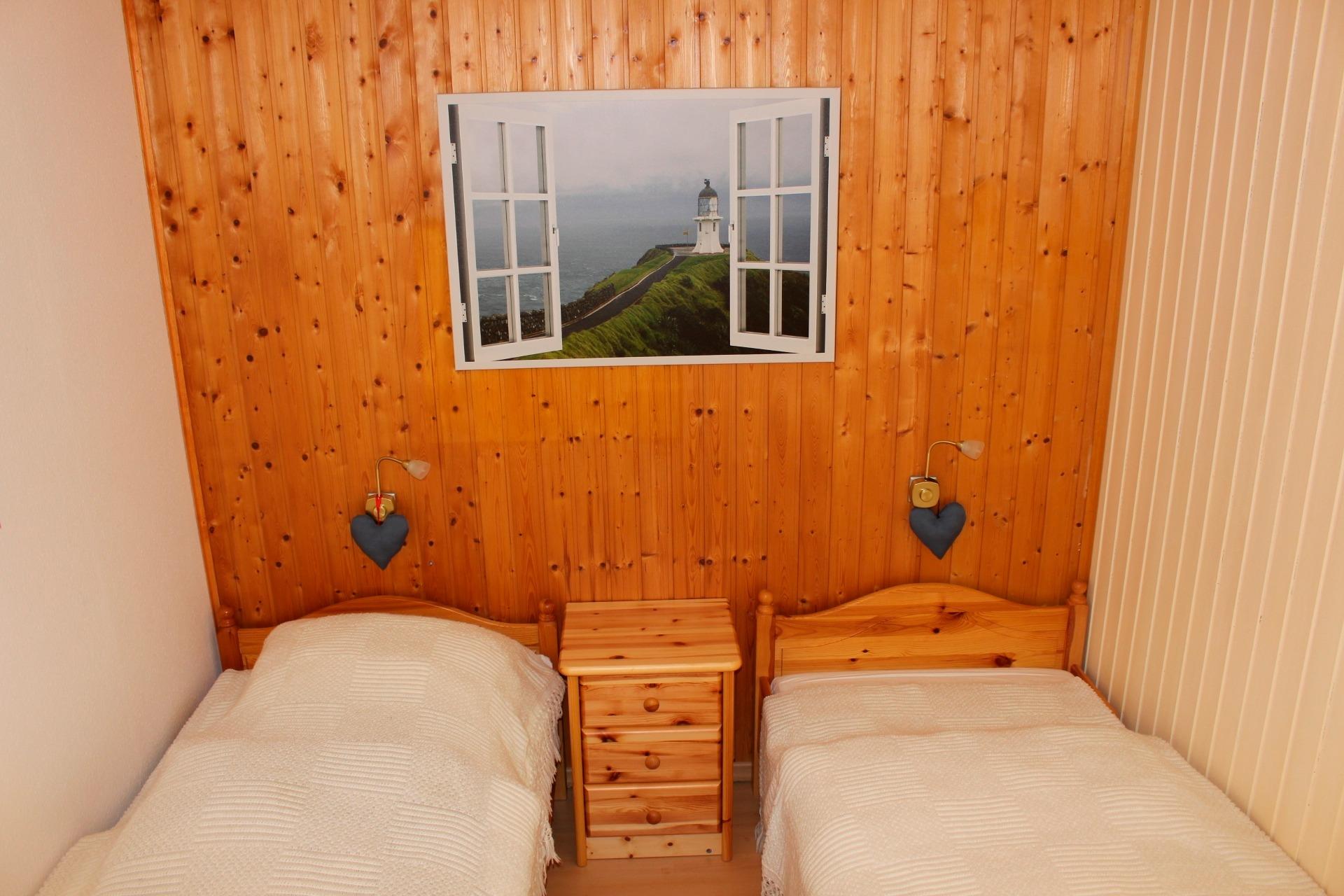Die Wohnung liegt im 4. Obergeschoss (Fahrstuhl vorhanden). Die Betten sind 2m lang und haben eine Fußbegrenzung.