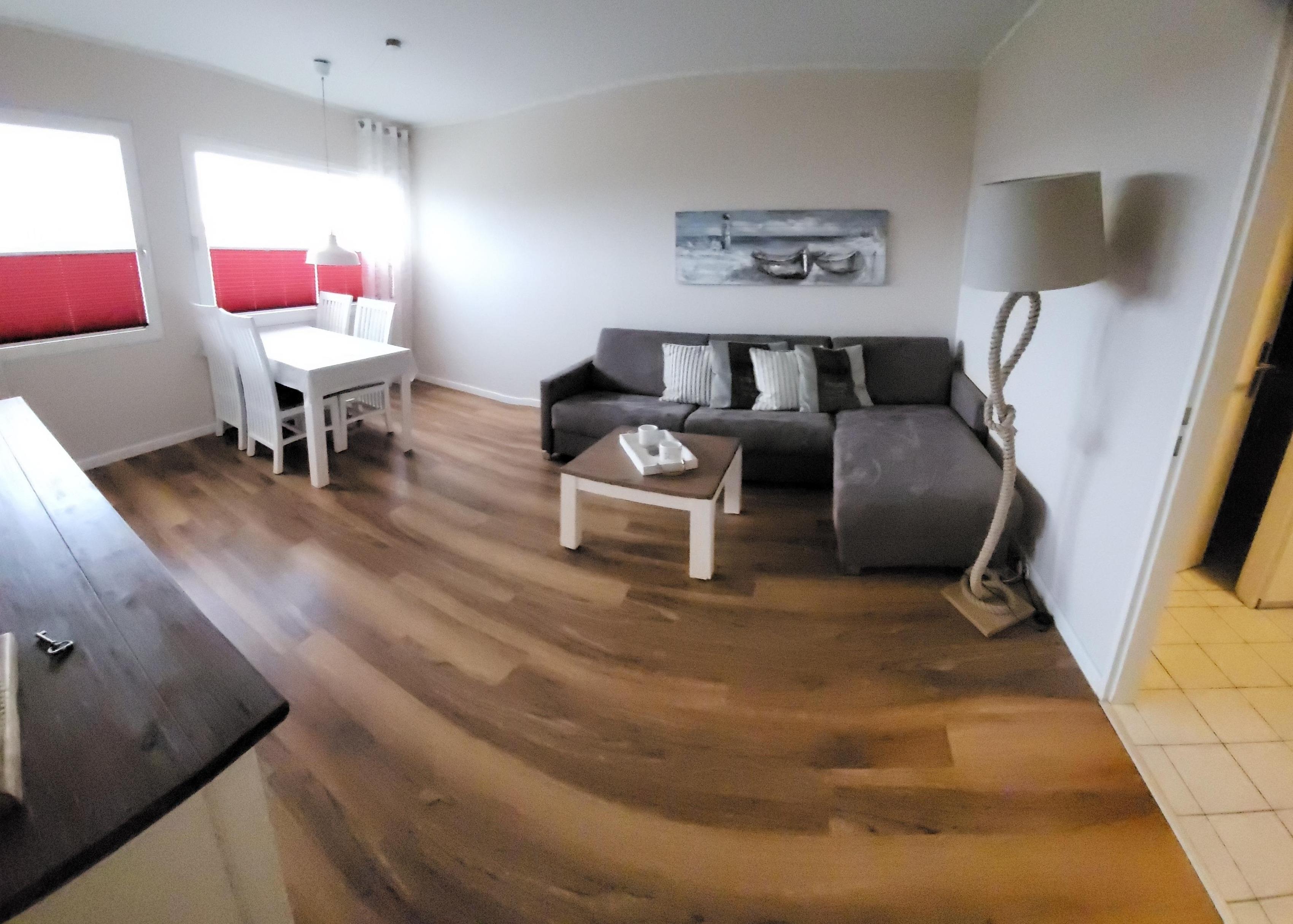 Gemütliche Ferienwohnung mit Hafenblick und Strandnähe auf Fehmarn, ideal zur Erholung mit moderner Ausstattung.