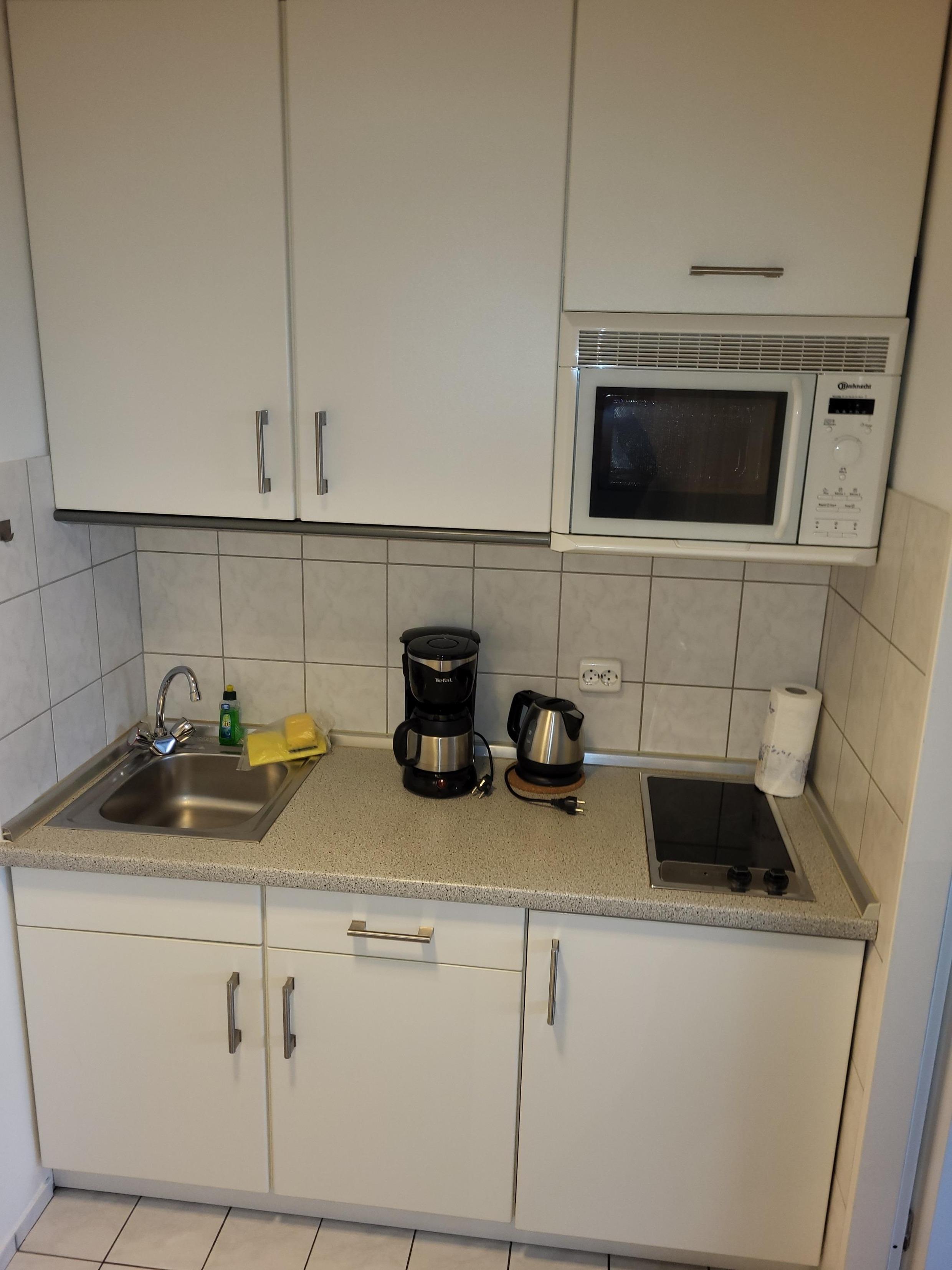 Ein gemütlicher Wohnraum mit hochwertigen Möbeln. Die Fenster sind mit Plissee und Insektenschutz versehen. In der Marina im Schlafraum steht ein großes Boxspringbett (180 x 200 cm) mit durchgehendem Topper. Duschbad mit Fußbodenheizung. Pantryküche mit 2-Platten Ceranfeld und allen wichtigen Dingen: Wasserkocher, Toaster, Kaffeemaschine, Mikrowelle, ausreichendes, hochwertiges Geschirr, Kühlschrank mit Gefrierfach. Hier kann man sich nur erholen! Im 1. Stock gelegen, ein Fahrstuhl ist vorhanden. Einen Balkon gibt es leider nicht.