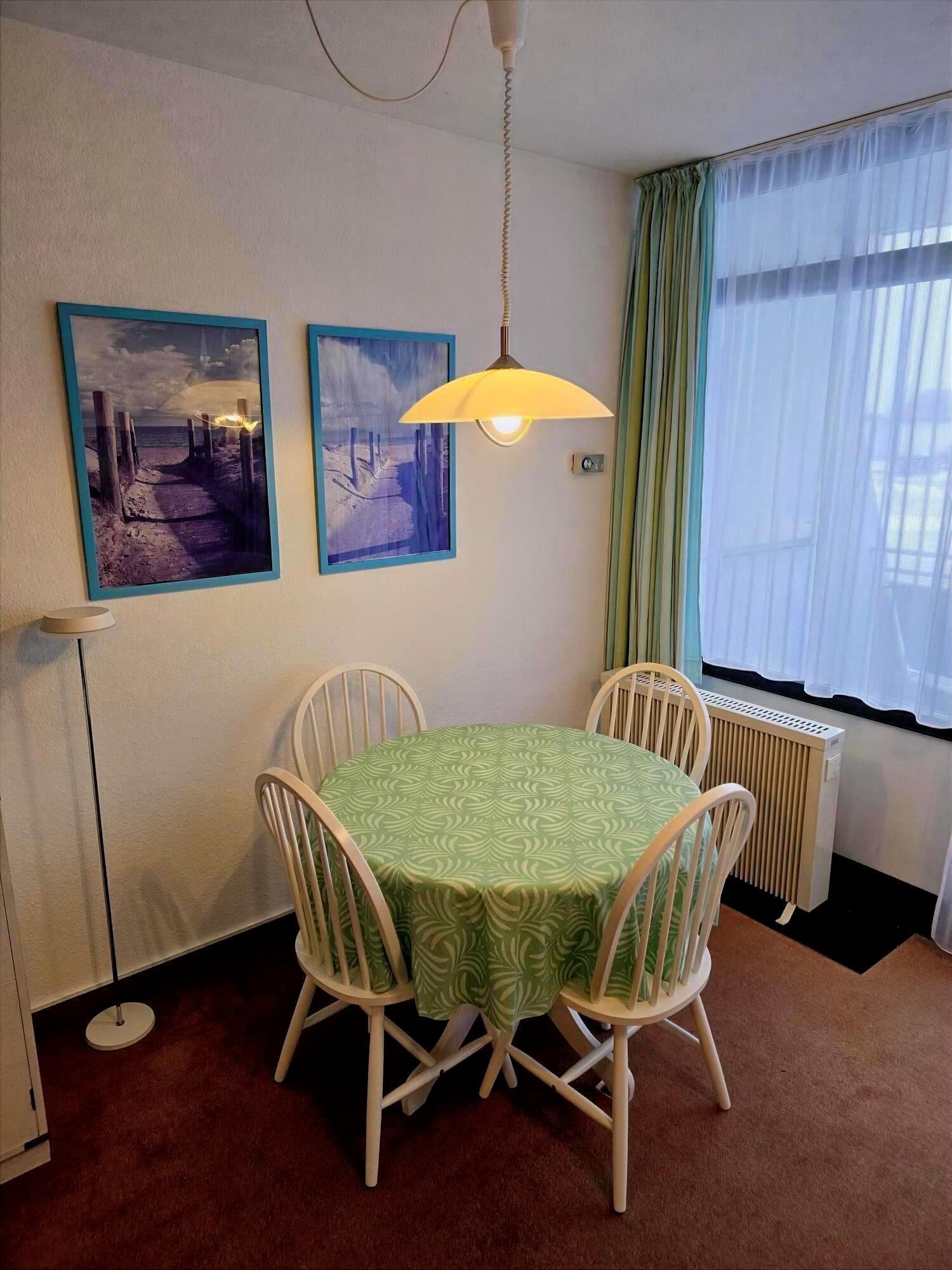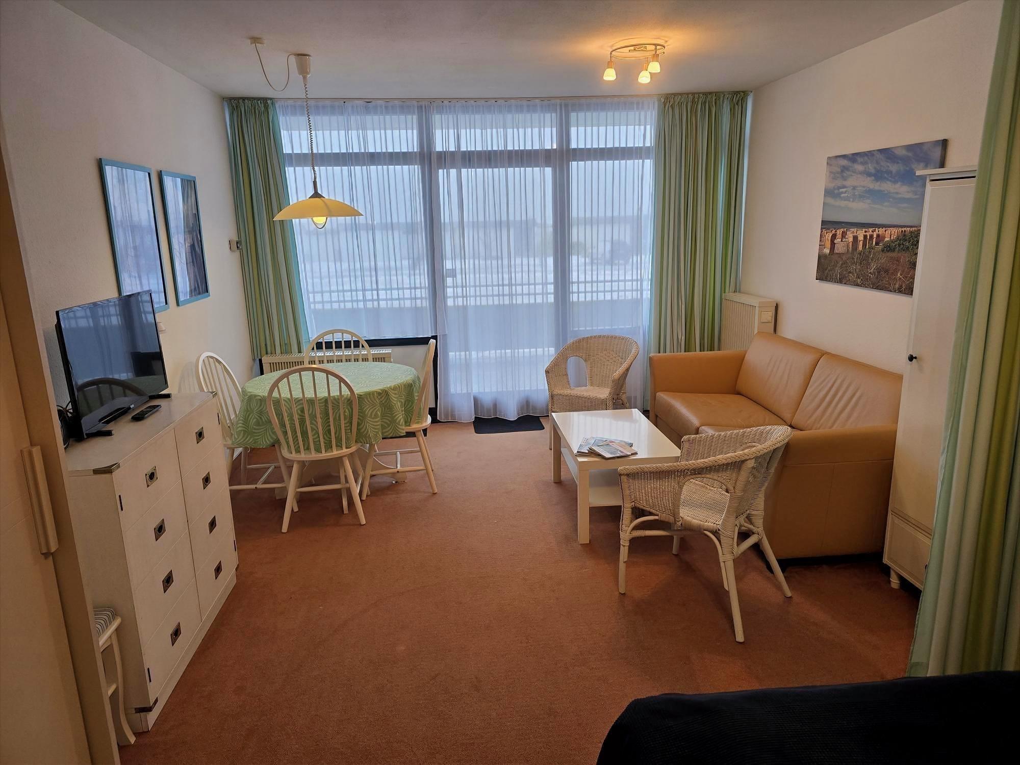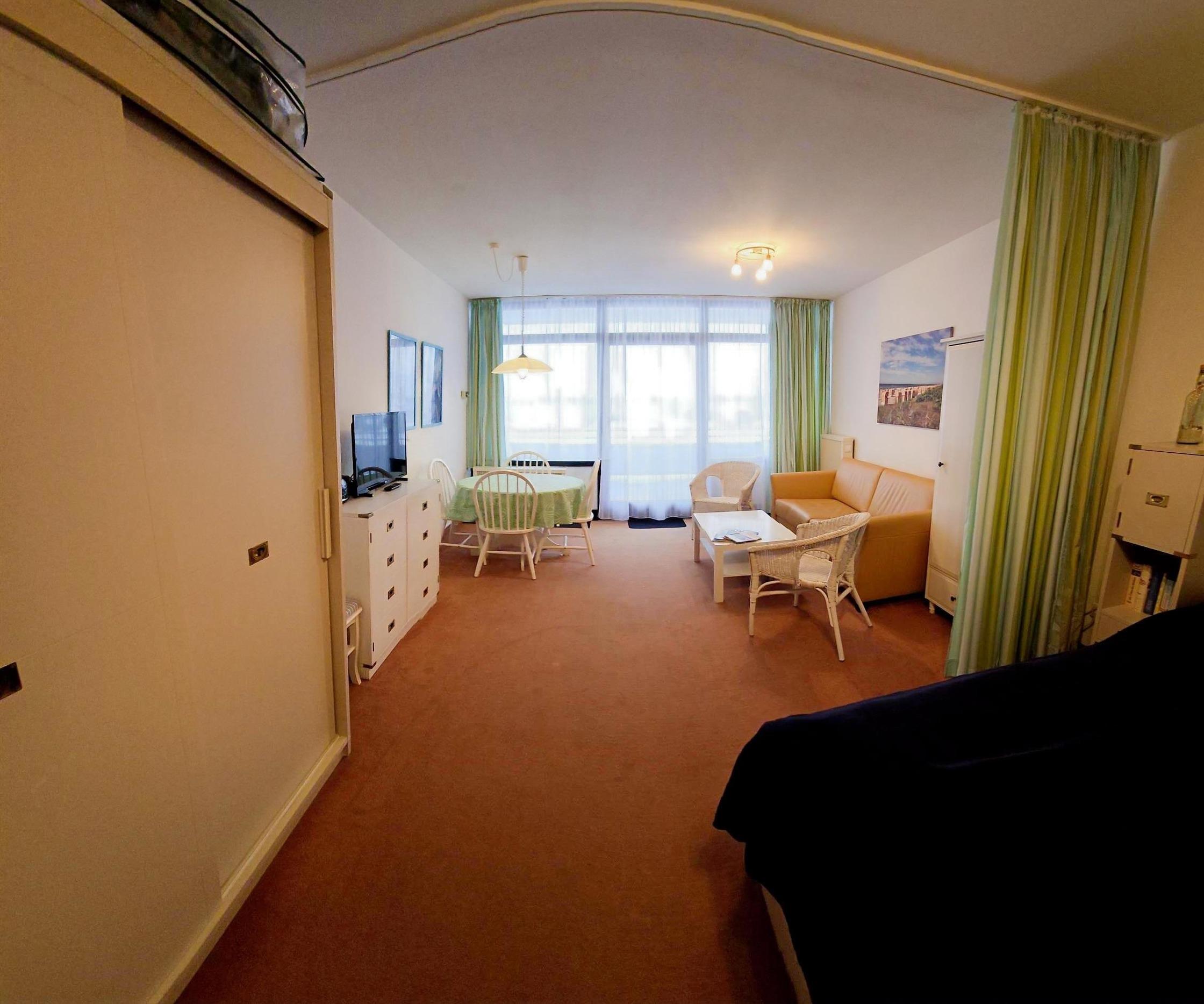 Schöne, gemütlich eingerichtete Wohnung für zwei Personen im EG eines Mehrfamilienhauses mit eigenem EG Balkon / Terrasse. Mit nur wenigen Schritten in wenigen Minuten fühlen Sie den Strand unter den Füßen! Die Wohnung hat einen Wohn-, Schlafraum mit Essecke und dem Balkon. Ferner ein Duschbad und eine Pantryküche im Eingangsbereich (kann aber mittels einer Tür abgetrennt werden). Natürlich haben Sie einen eigenen Parkplatz!