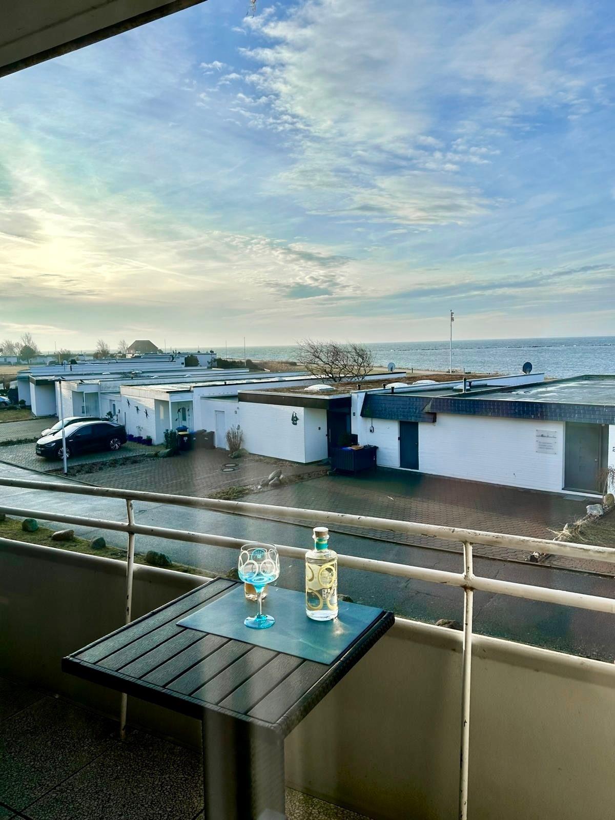Vom Balkon mit Gartenmöbeln haben sie einen herrlichen Ostseeblick.