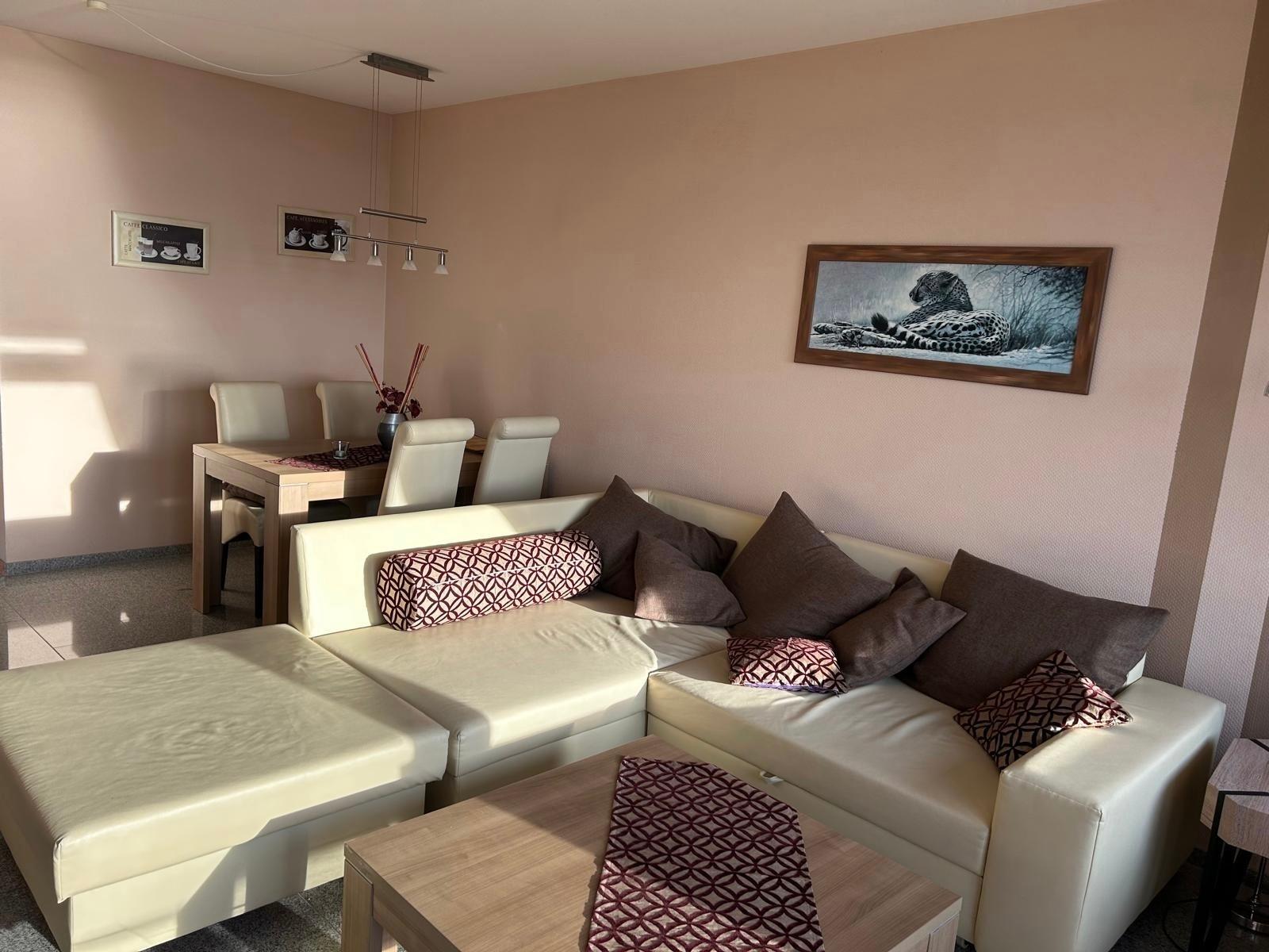 ein großes Wohnzimmer mit einer weiteren Schlafmöglichkeit (Schlafcouch mit einer Liegefläche 144 x 200 cm) und einem Essbereich.