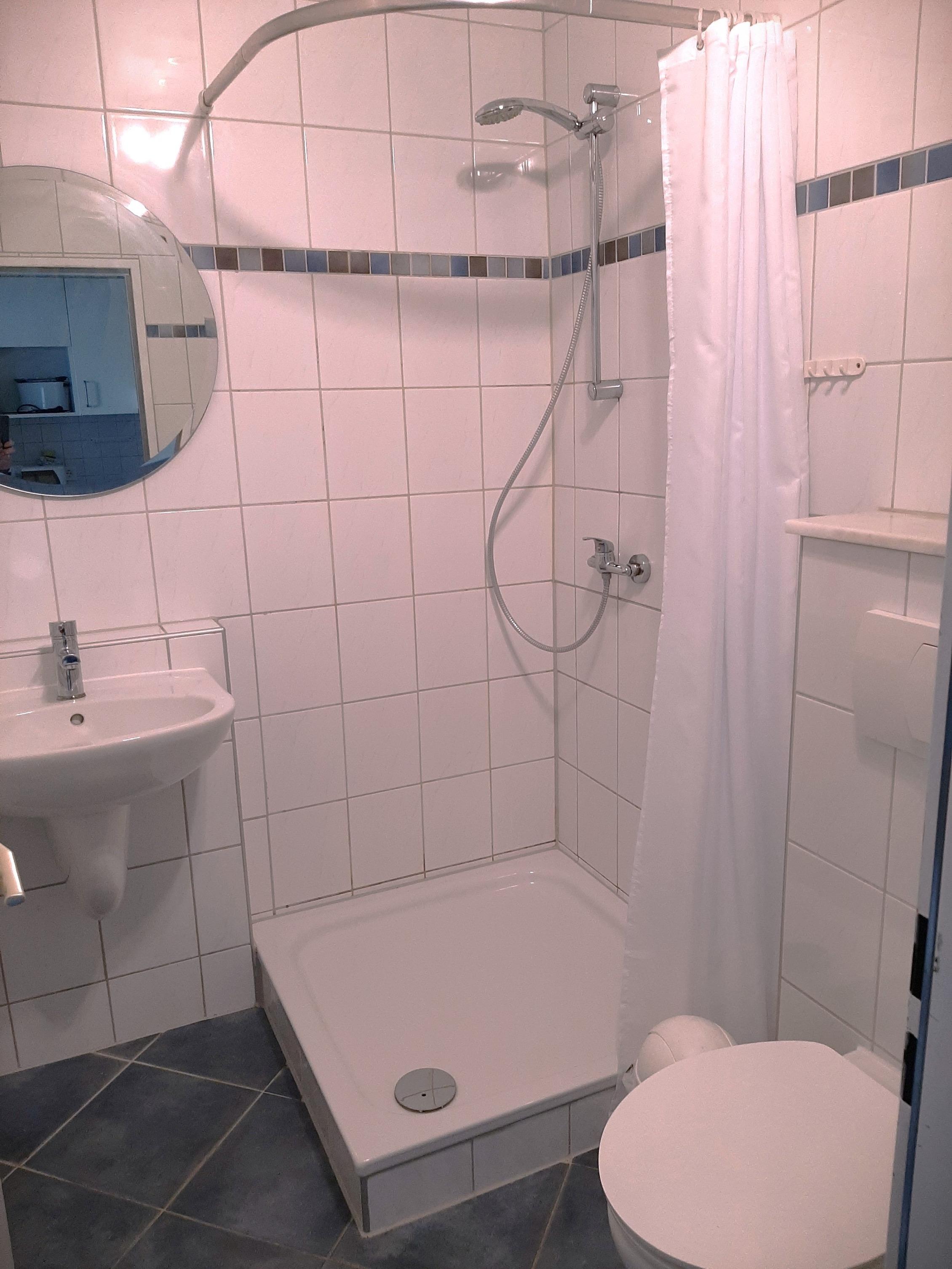 Zur Wohnung gehören ein modernes Bad mit Dusche und WC.