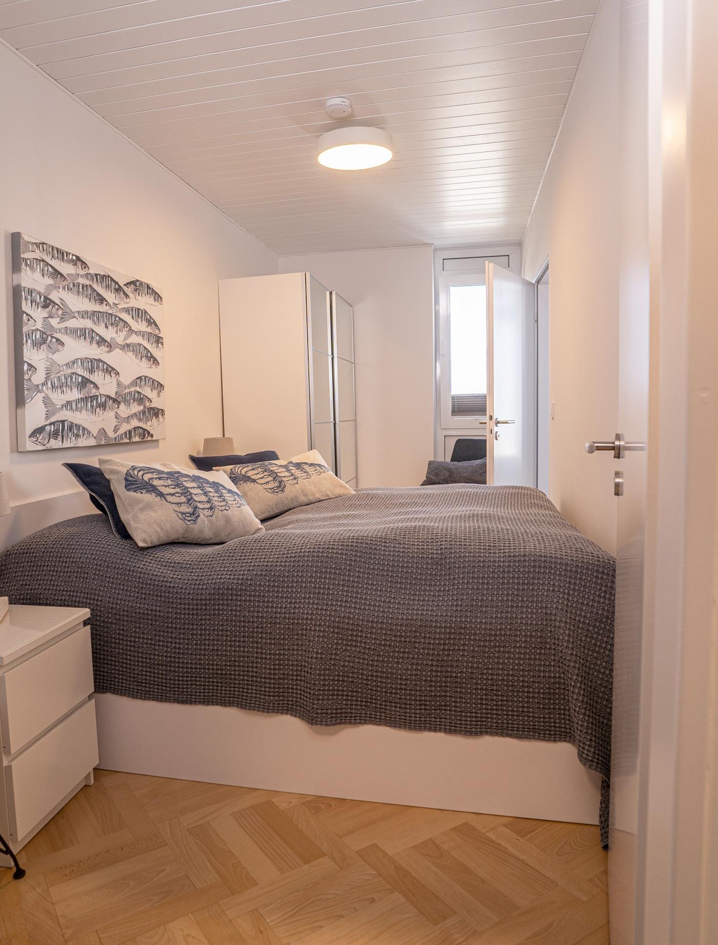 Vom Wohnzimmer gelangen Sie auch ins gemütliche Schlafzimmer. Es ist mit einem 1,80m breiten und 2,00m langem Doppelbett mit zwei Einzelmatratzen sowie einem großen Kleiderschrank mit großen Spiegeltüren ausgestattet.