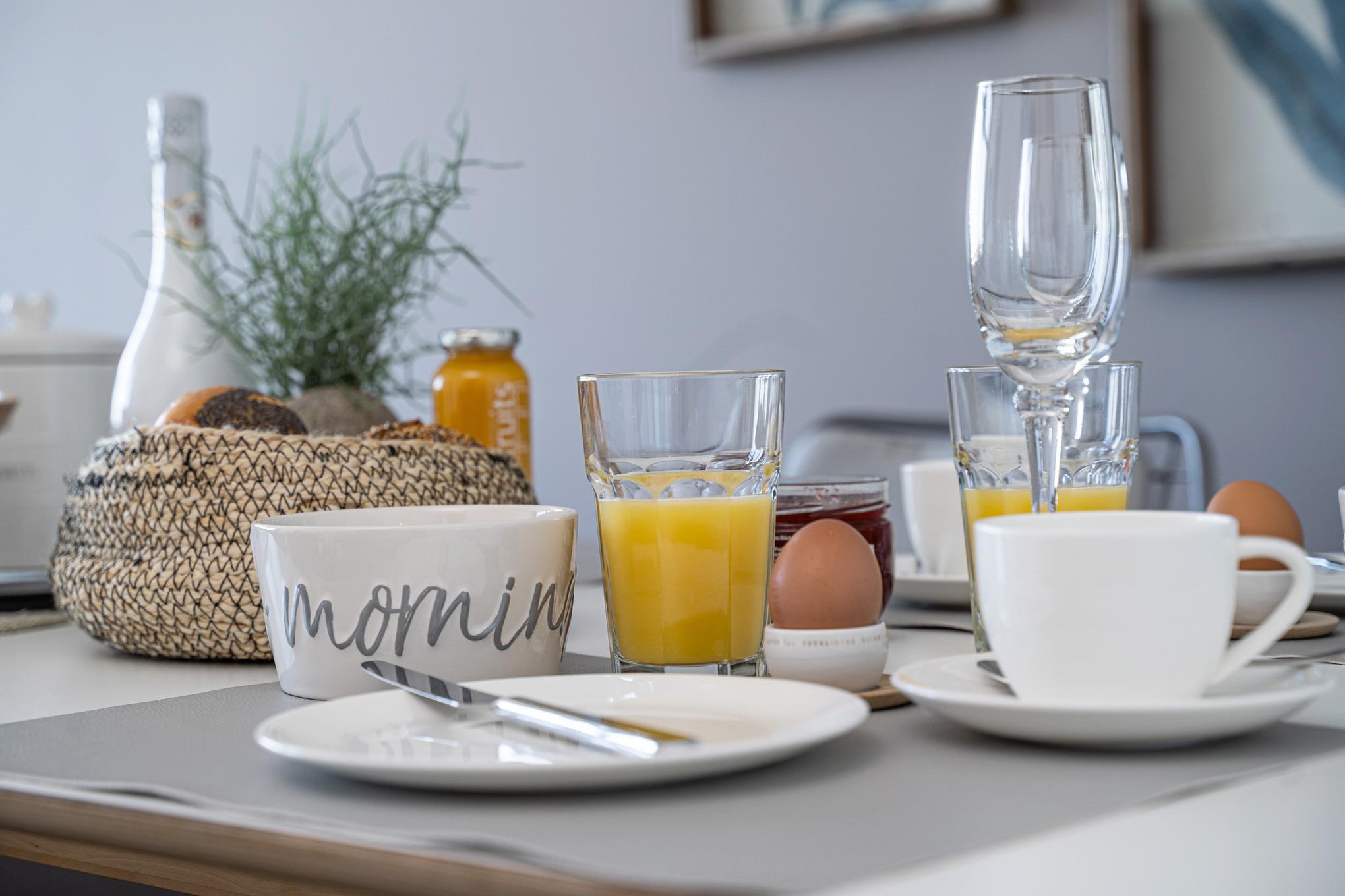 Moderne Ferienwohnung mit Meerblick und Balkon nahe feinem Sandstrand auf Fehmarn.