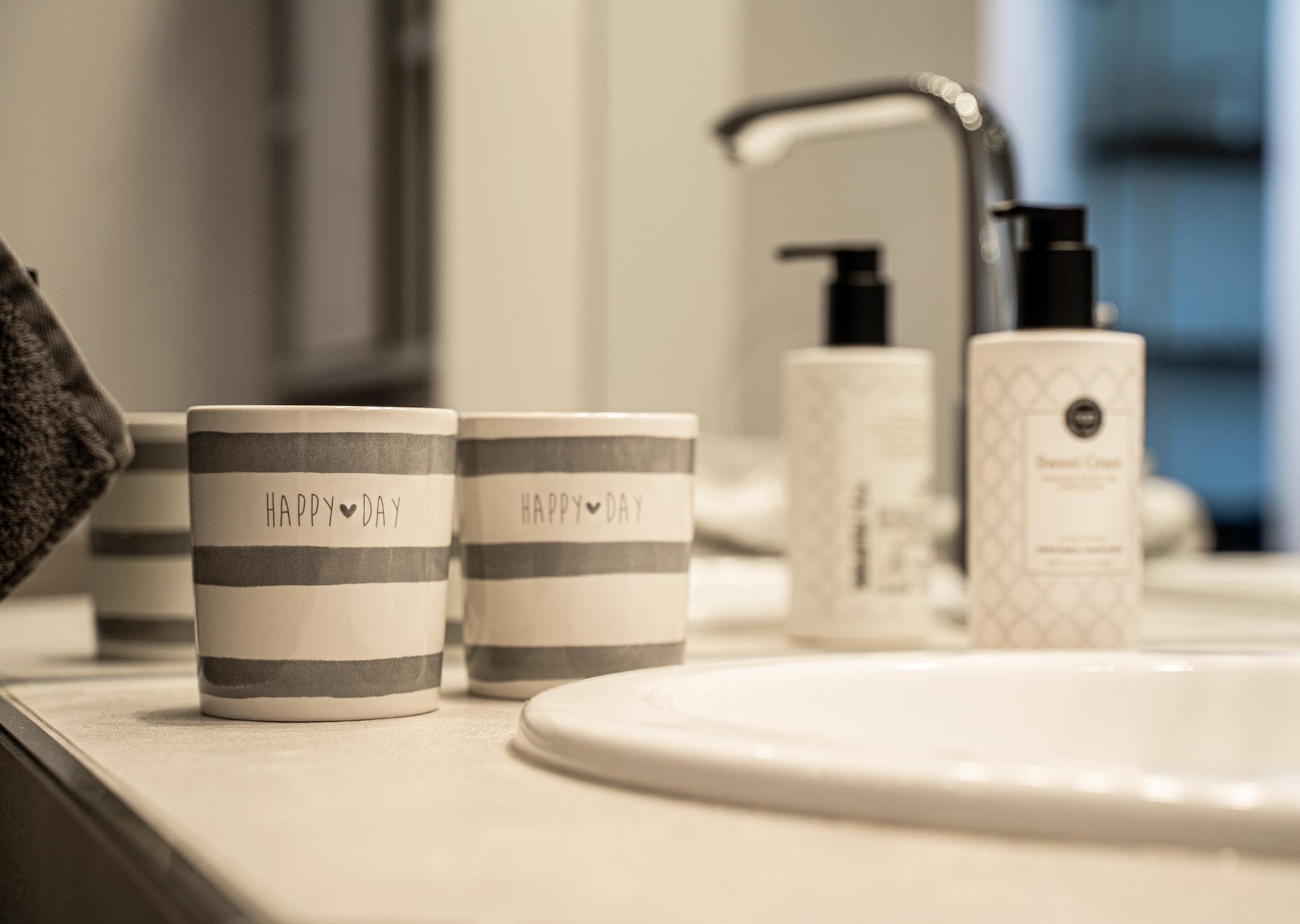 Die Küche ist mit einem Induktionskochfeld, Backofen mit Mikrowelle, Kühlschrank mit Gefrierfach, Geschirrspüler, Kaffeemaschine, Wasserkocher und Toaster etc. sowie einer Waschmaschine vollständig ausgestattet.
