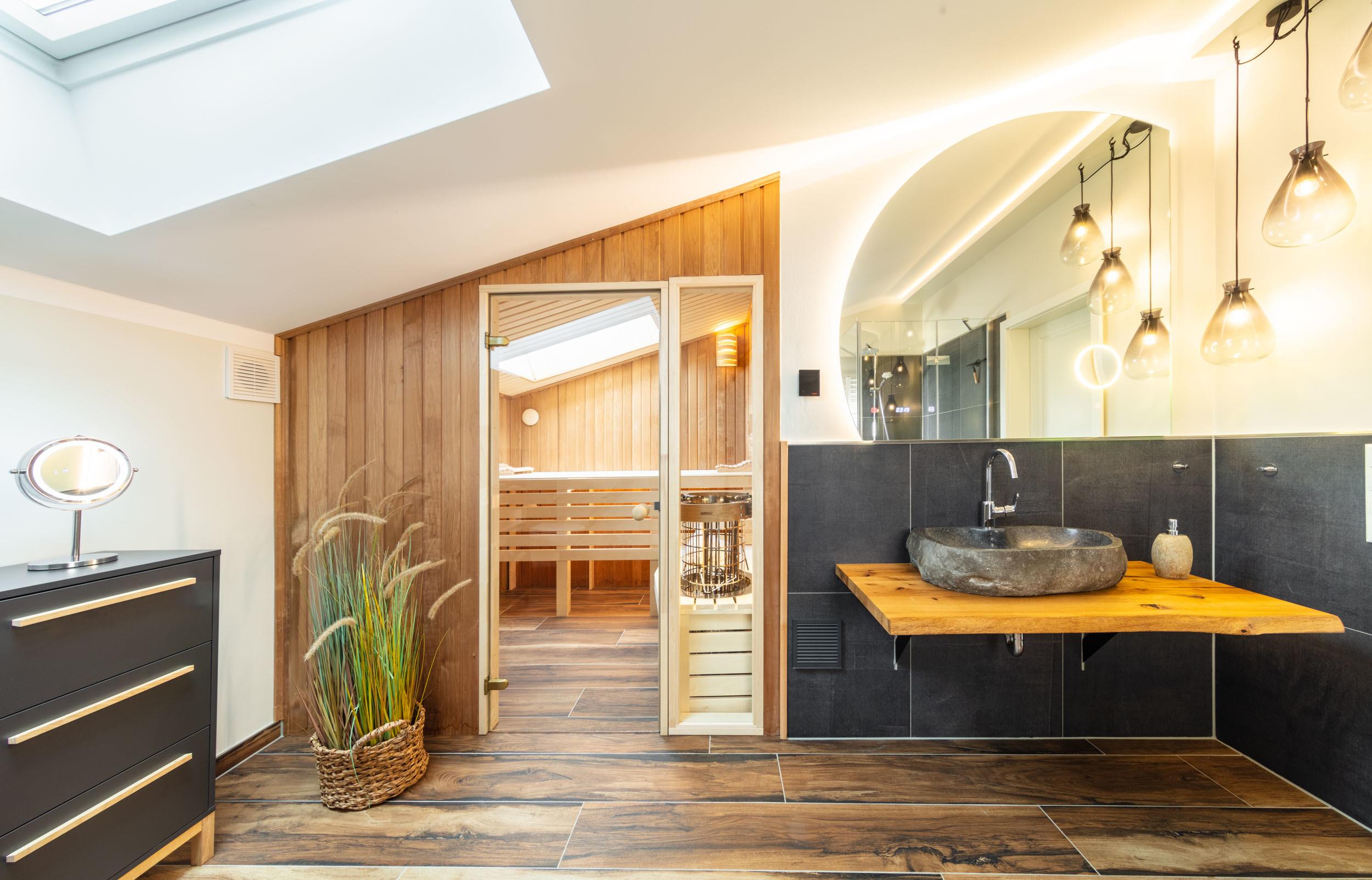 An der Casa Florale ist so einiges besonders. Kochen Sie ein geschmackvolles Abendessen in der voll ausgestatteten Küche, während Ihre Liebsten gemütlich am hochwertigen Esstisch auf Sie warten. Lassen Sie den Abend ausklingen in der handgefertigten, privaten Sauna. Genießen Sie die Exklusivität, die Sie in Ihrem Urlaub verdienen.