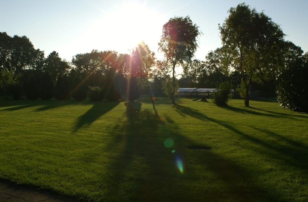 Auf der großen, mit einer Sitzgruppe, einem Webergrill und Liegen ausgestatteten Terrasse können Sie bis spät in den Abend die Sonne und den Blick auf den riesigen ca. 4000qm großen Garten genießen.