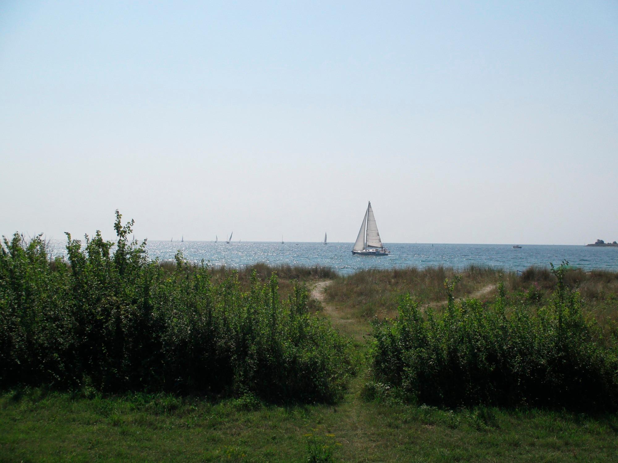 Gemütliche Ferienwohnung direkt am Fehmarnsund im Anbau eines Einfamilienhauses, nur 90 m bis zum Wasser und direktem Meerblick.