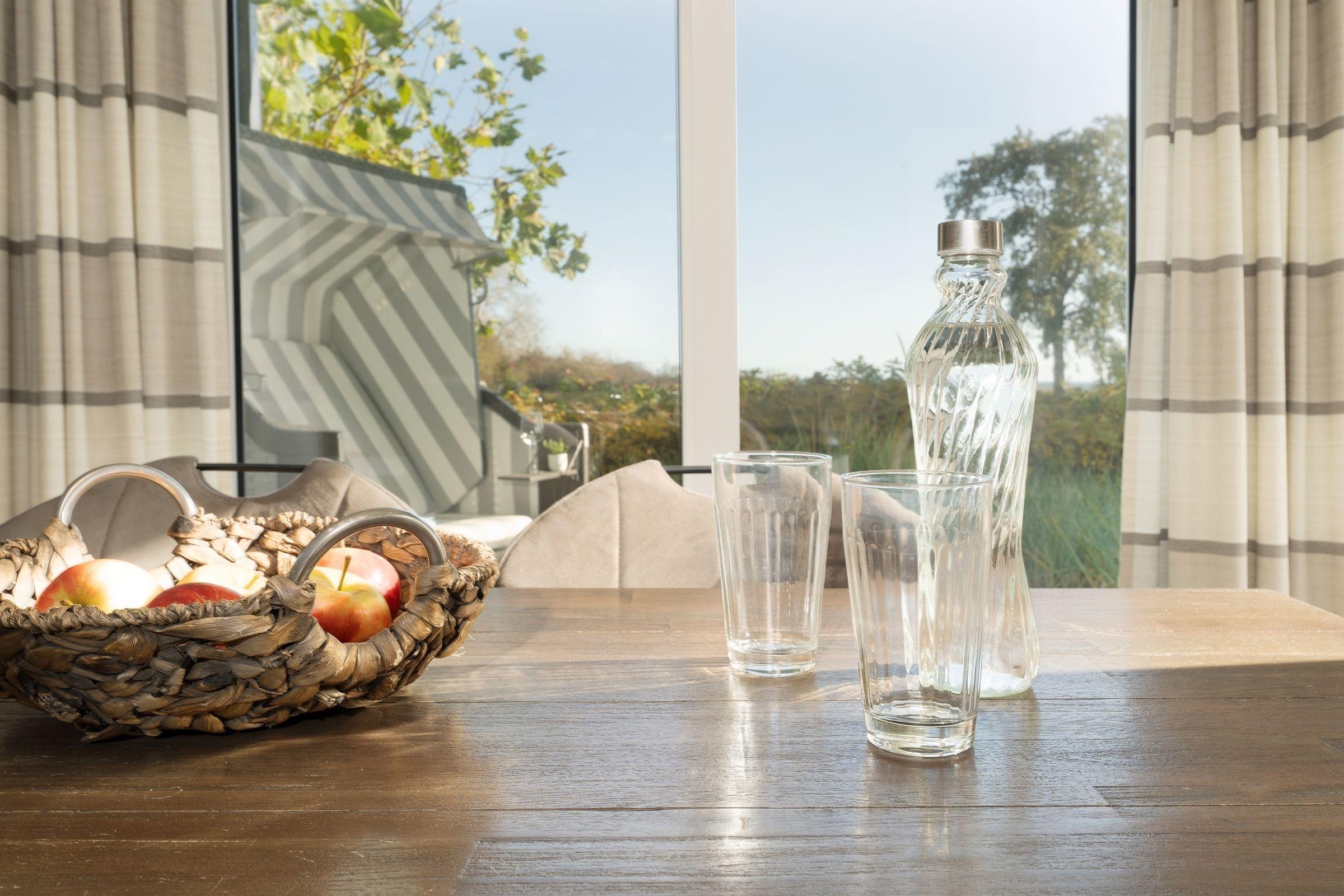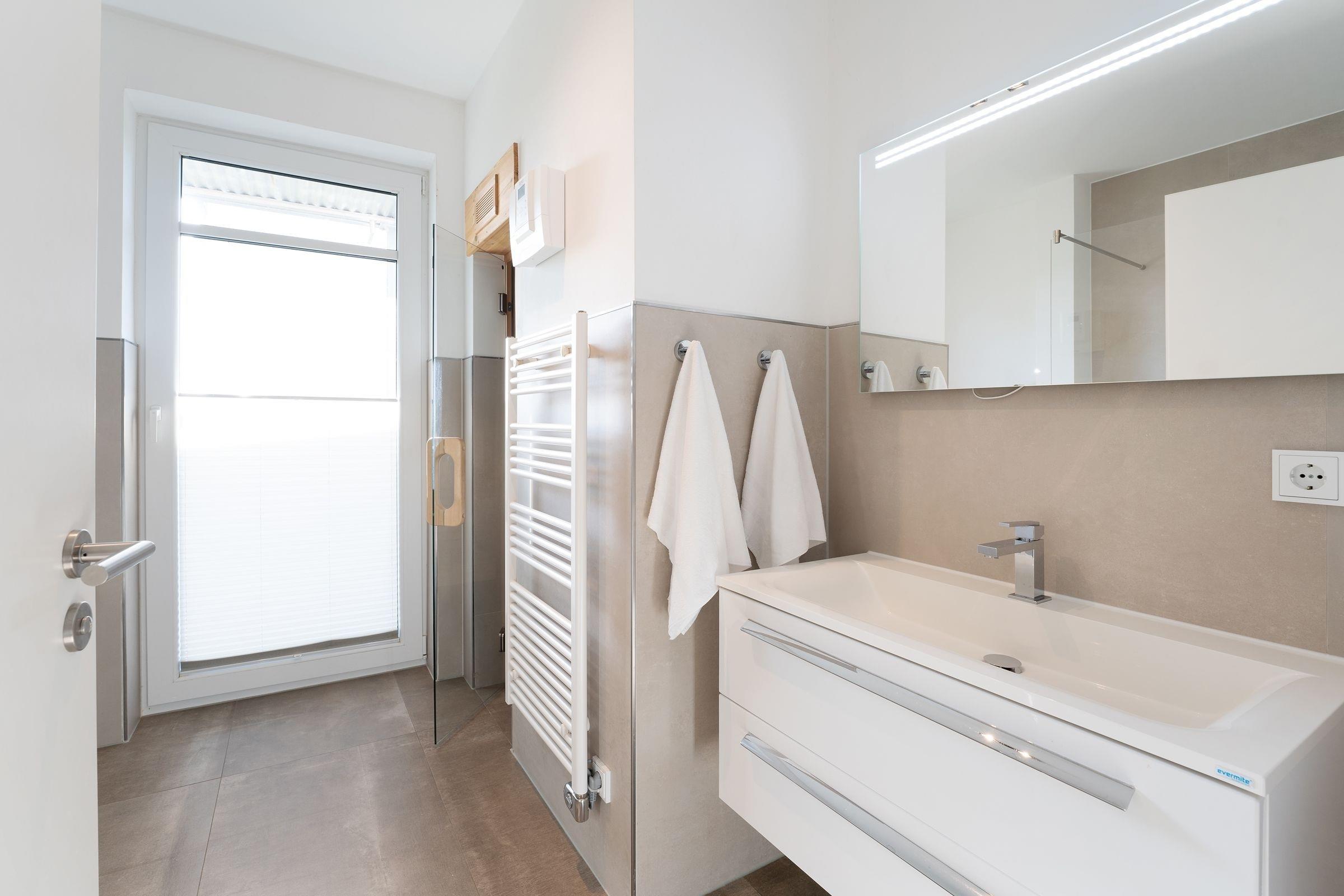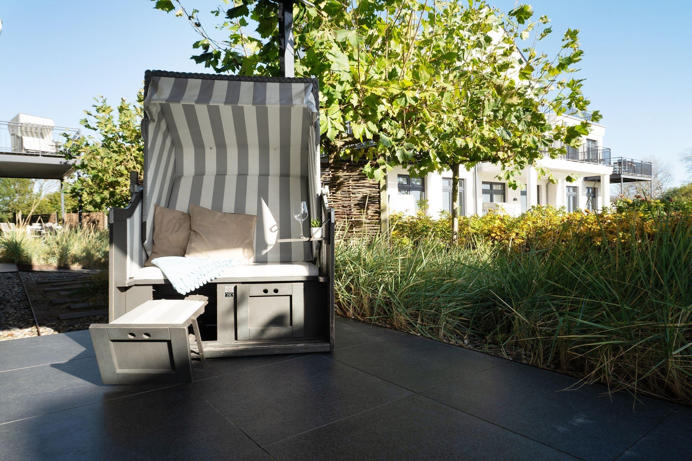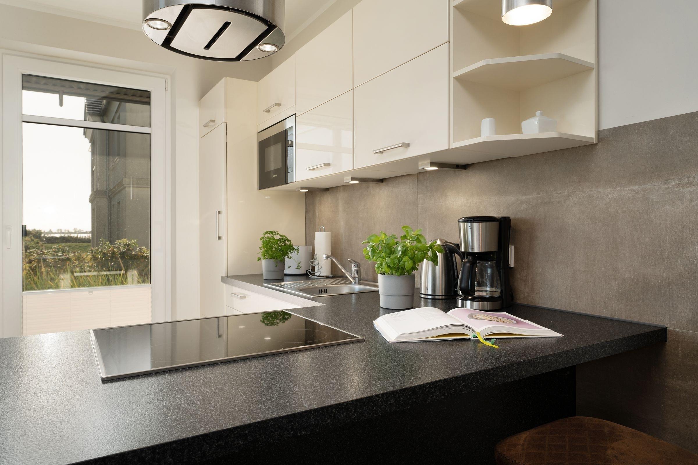 Bodentiefe Fenster mit Blick auf die Ostsee sowie ein heller, moderner Wohnbereich mit einer gut ausgestattete Küche mit angrenzendem Esstisch laden Sie zum Erholen ein. Für die Nacht stehen Ihnen drei Schlafzimmer zur Verfügung, davon zwei mit jeweils einem bequemen Doppelbett und eins mit einem Etagenbetten. In jedem der Schlafräume befindet sich ein eigenes TV-Gerät. Die zwei hochwertig ausgestatteten Duschbäder, eins davon verfügt über ein Fenster, haben jeweils eine bodengleiche Dusche. Die Wohnung ist komplett gefliest und mit einer Fußbodenheizung ausgestattet. Der Garten mit teilüberdachter Terrasse mit Strandkorb und Panorama-Meerblick lädt zum Entspannen und Verweilen ein. Genießen Sie gemütliche Abende nach einem tollen Tag am Strand oder einem erlebnisreichen Ausflug entlang der reizvollen Ostseeküste.