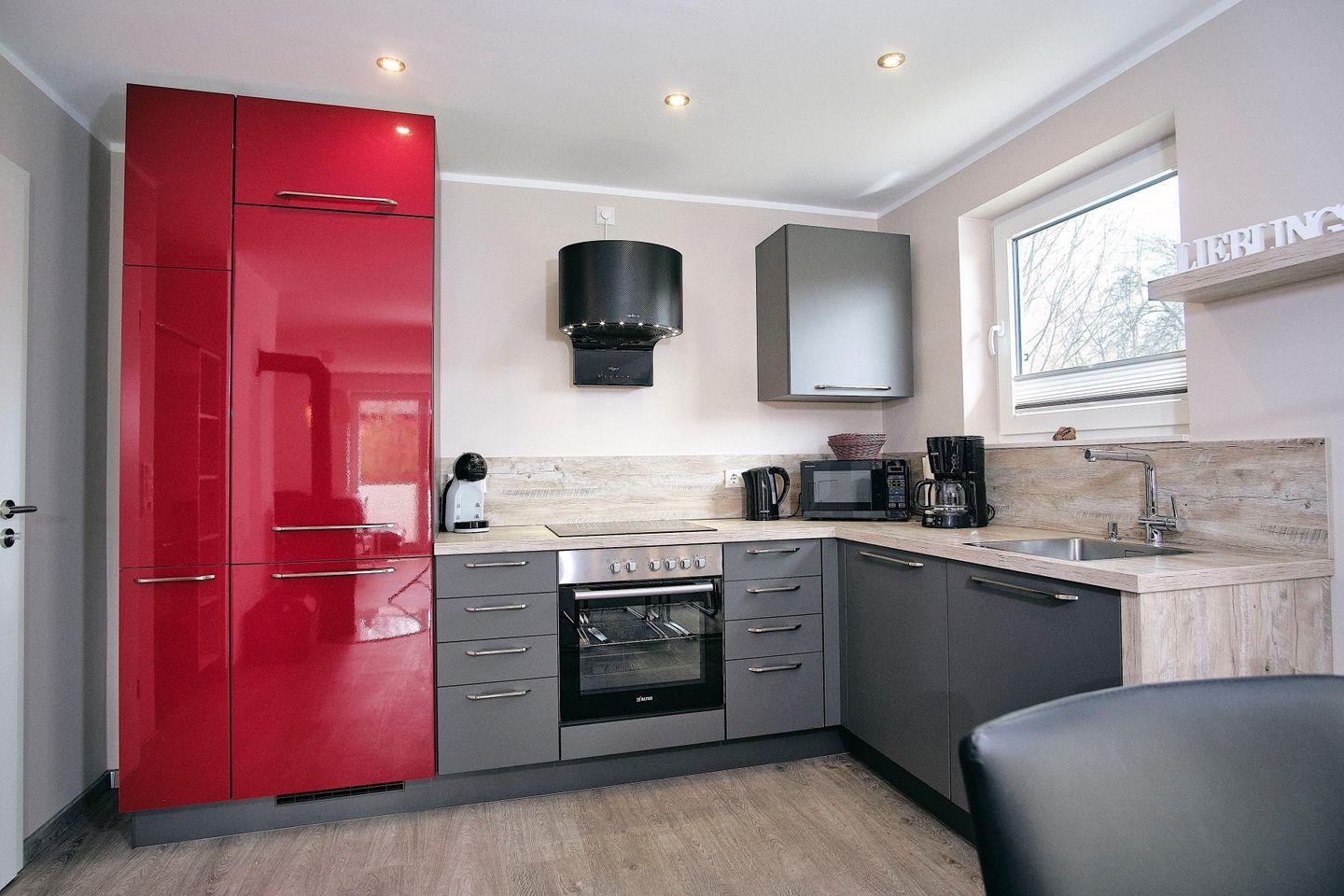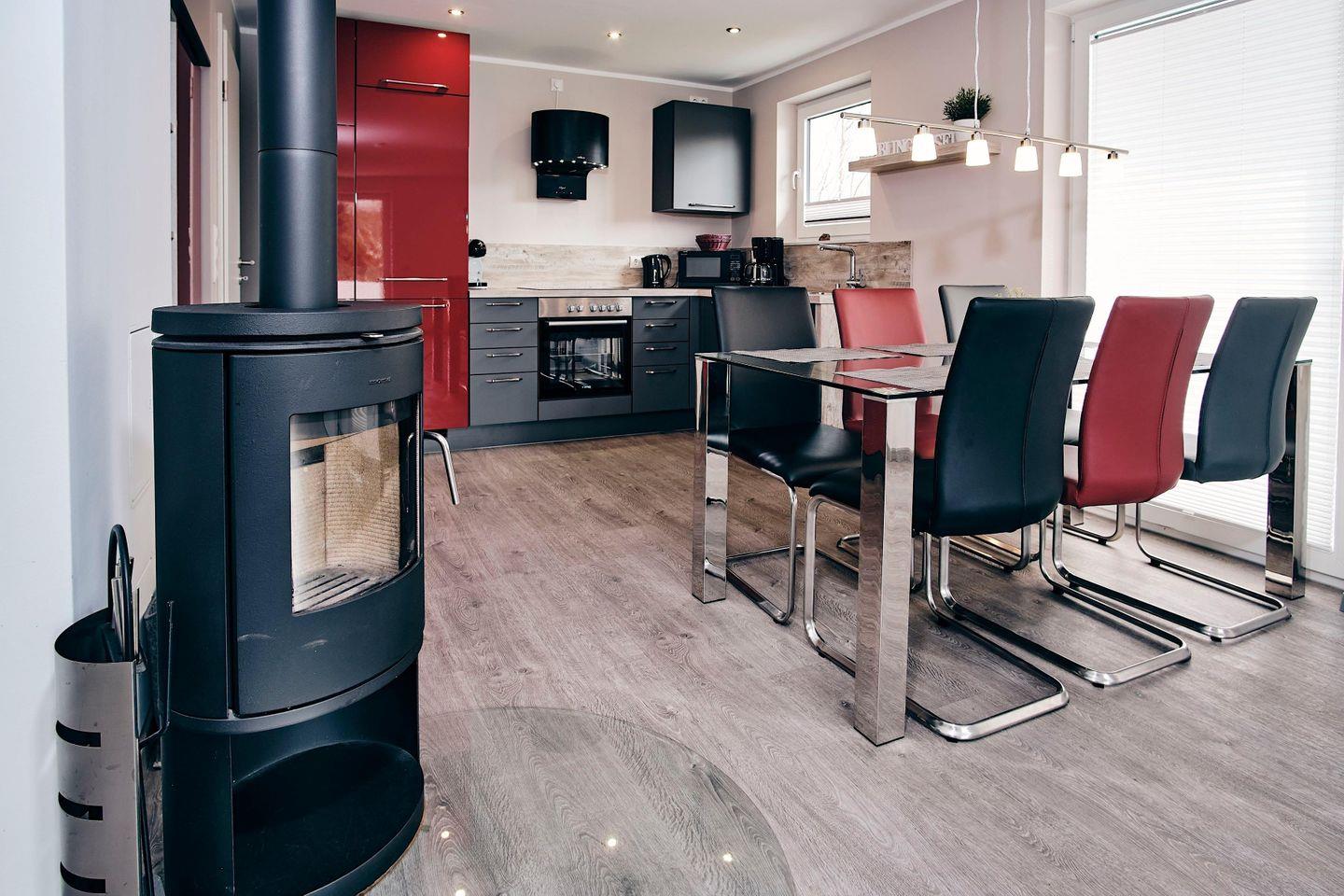 Modernes Ferienhaus Meeresbrise auf Fehmarn mit Sauna, Kamin und großem Garten für erholsamen Urlaub.