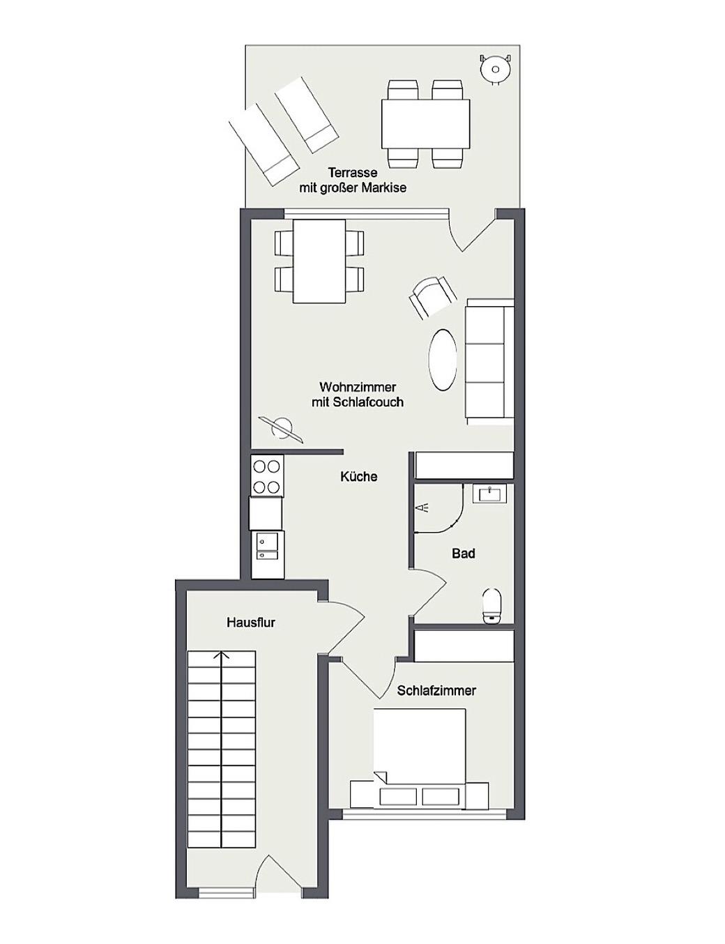 Frisch renovierte Ferienwohnung in Gold auf Fehmarn mit Terrasse und direktem Zugang zum Naturstrand an der Ostsee.