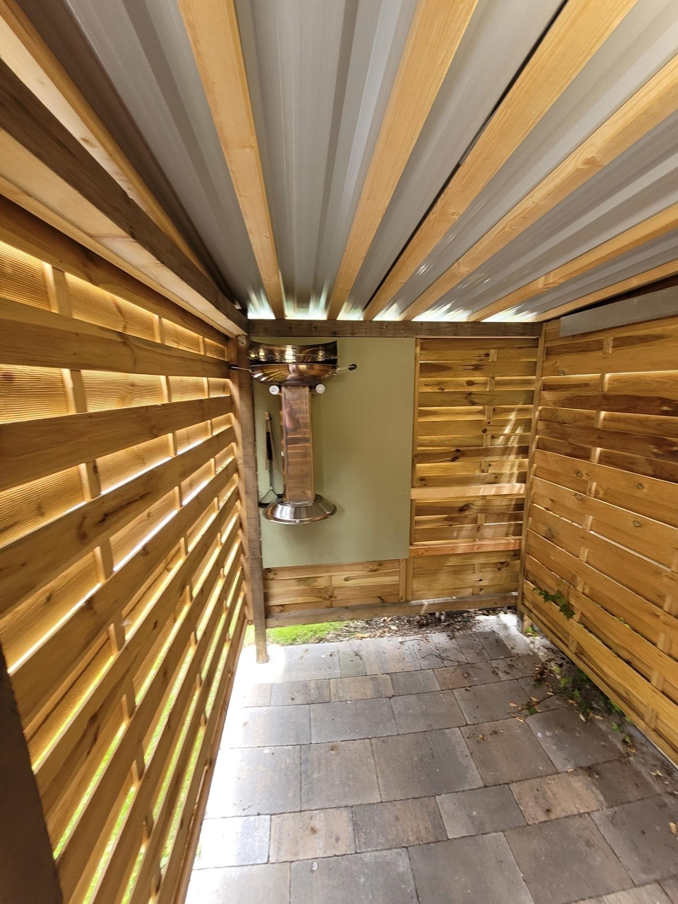 Das Badezimmer hat eine Dusche.