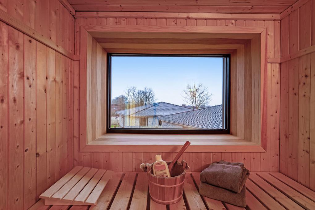 Erholen Sie sich im Wellnessbad mit Sauna, Wellnessliegen und Whirlpool oder auf der Terrasse im eigenen Strandkorb.