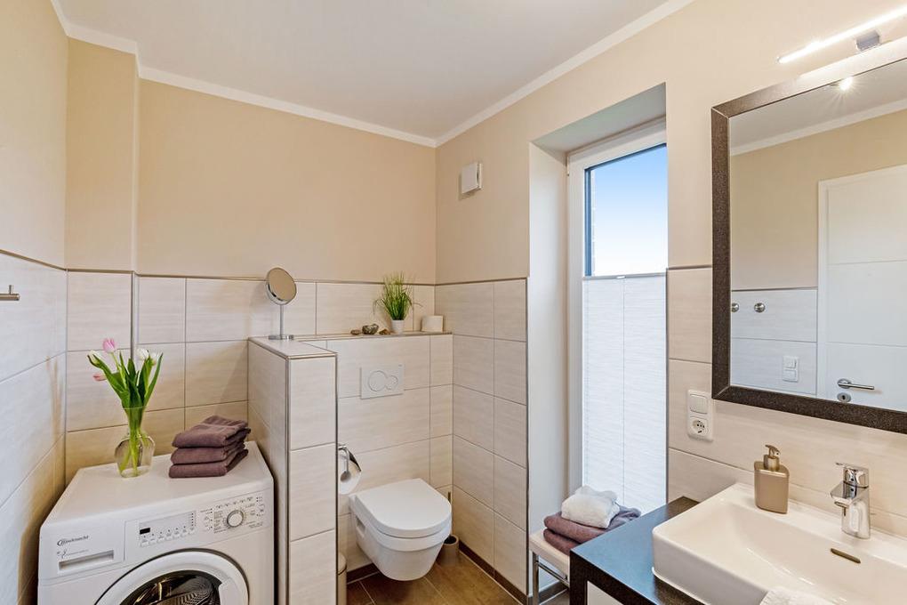 • 1 Badezimmer mit großer ebenerdiger Dusche, WC und Waschmaschine EG