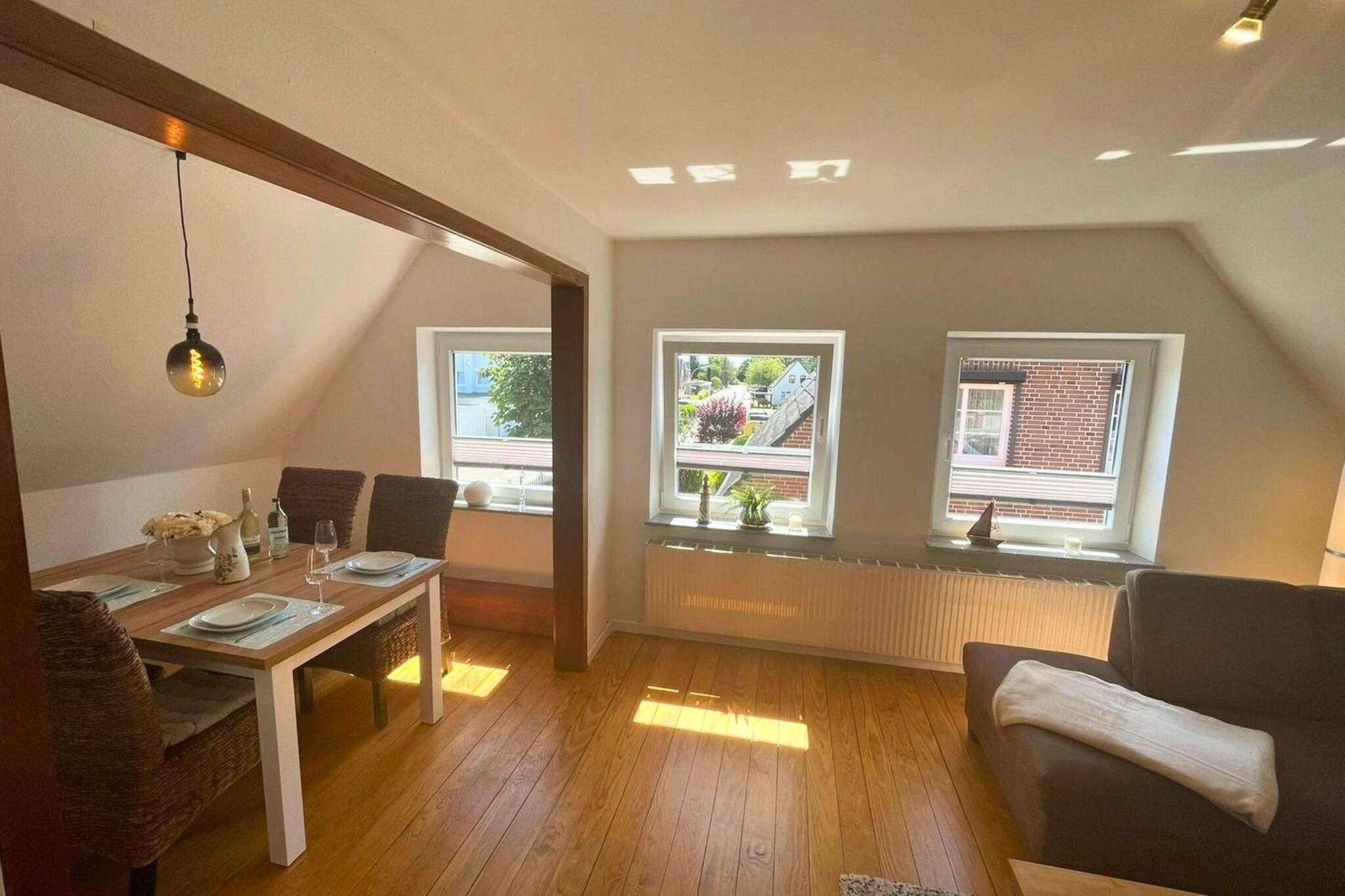 Dachgeschoss: (Küche(Wasserkocher, Toaster, Kochherd, Kaffeemaschine, Backofen, Mikrowelle, Spülmaschine, Kühl-/Gefrierkombination), Wohn/Esszimmer(TV, Esstisch, Sitzecke), Schlafzimmer(Doppelbett), Schlafzimmer(Einzelbett), Badezimmer(Dusche, Waschbecken, Toilette, Föhn)) Garten, Gartenmöbel, Grill, Parkplatz