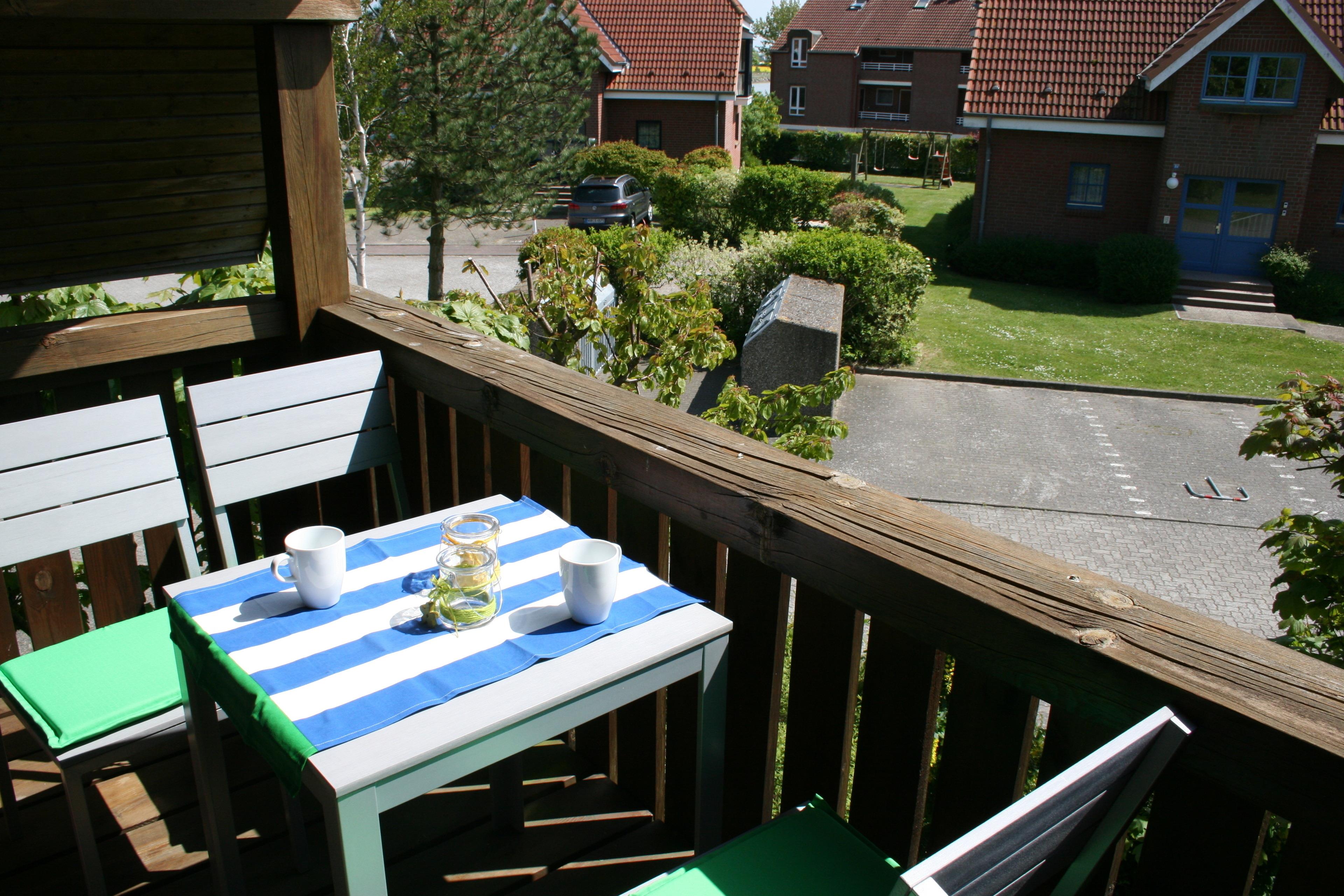 Der überdachte Balkon lädt ein zum sonnenbaden oder entspanntem genießen der Abendstimmung. Er liegt in südwestlicher Richtung. Gartenmöbel sind vorhanden.