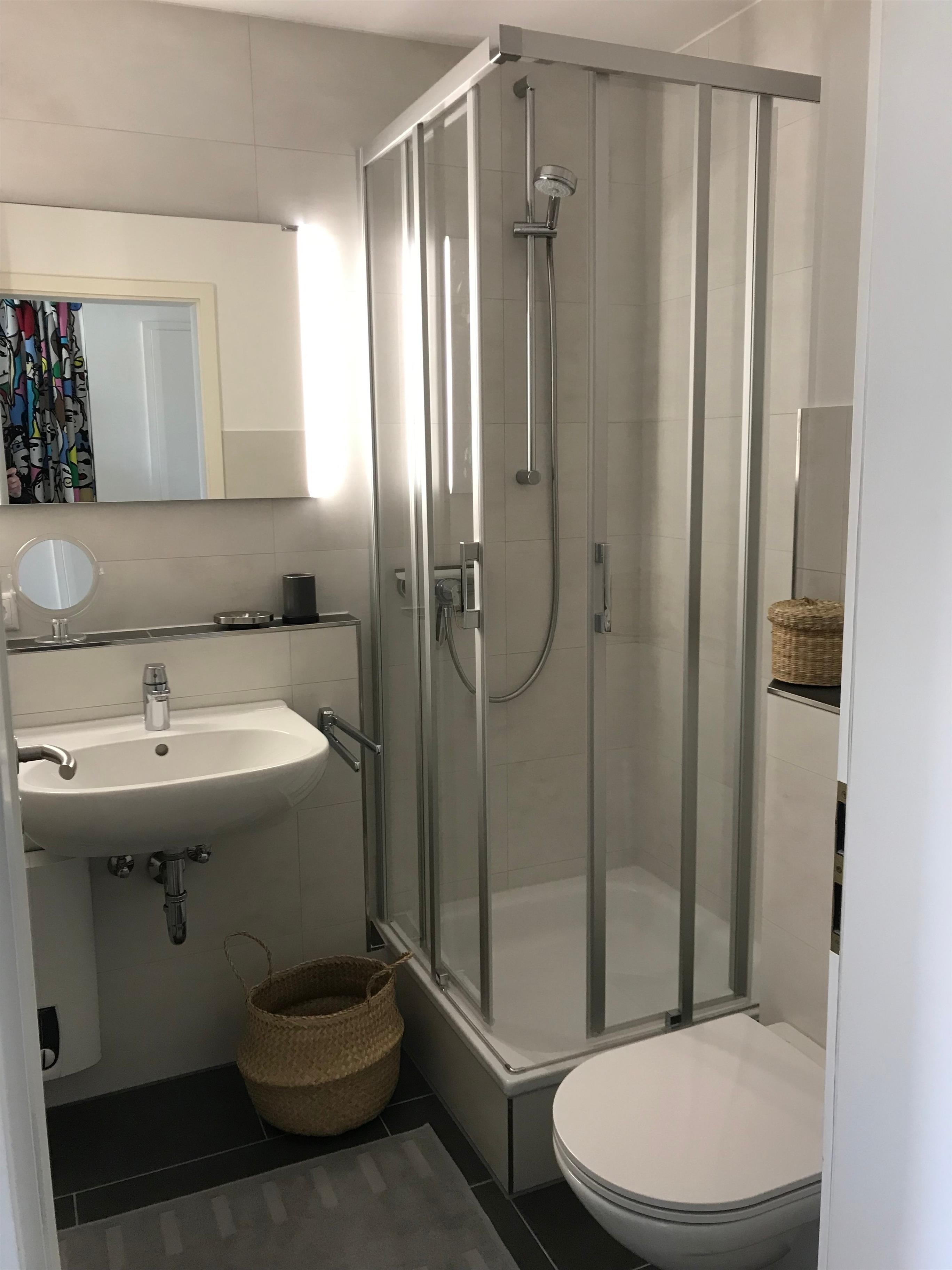 In der Wohnung gibt es ein ansprechendes Duschbad mit neuem WC und Waschbecken.