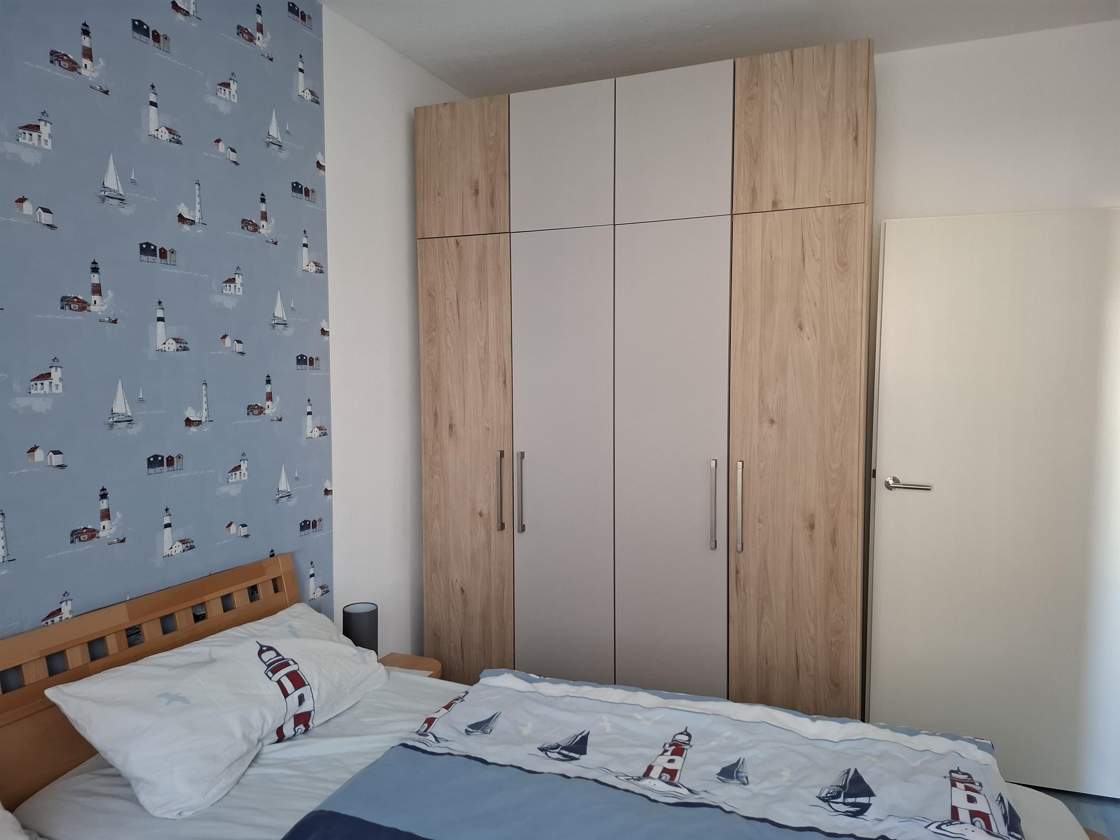 Das Schlafzimmer hat ein klassisches Doppelbett, das Kinderzimmer verfügt über ein Hochbett und eine Schlafcouch. Die moderne Küche verfügt über einen Geschirrspüler, Backofen, Cerankochfeld, Dunstabzugshaube, Kühlschrank mit Gefrierfach, Mikrowelle, Kaffeemaschine, Wasserkocher, Mixer, Eierkocher, Toaster und eine Waschmaschine.