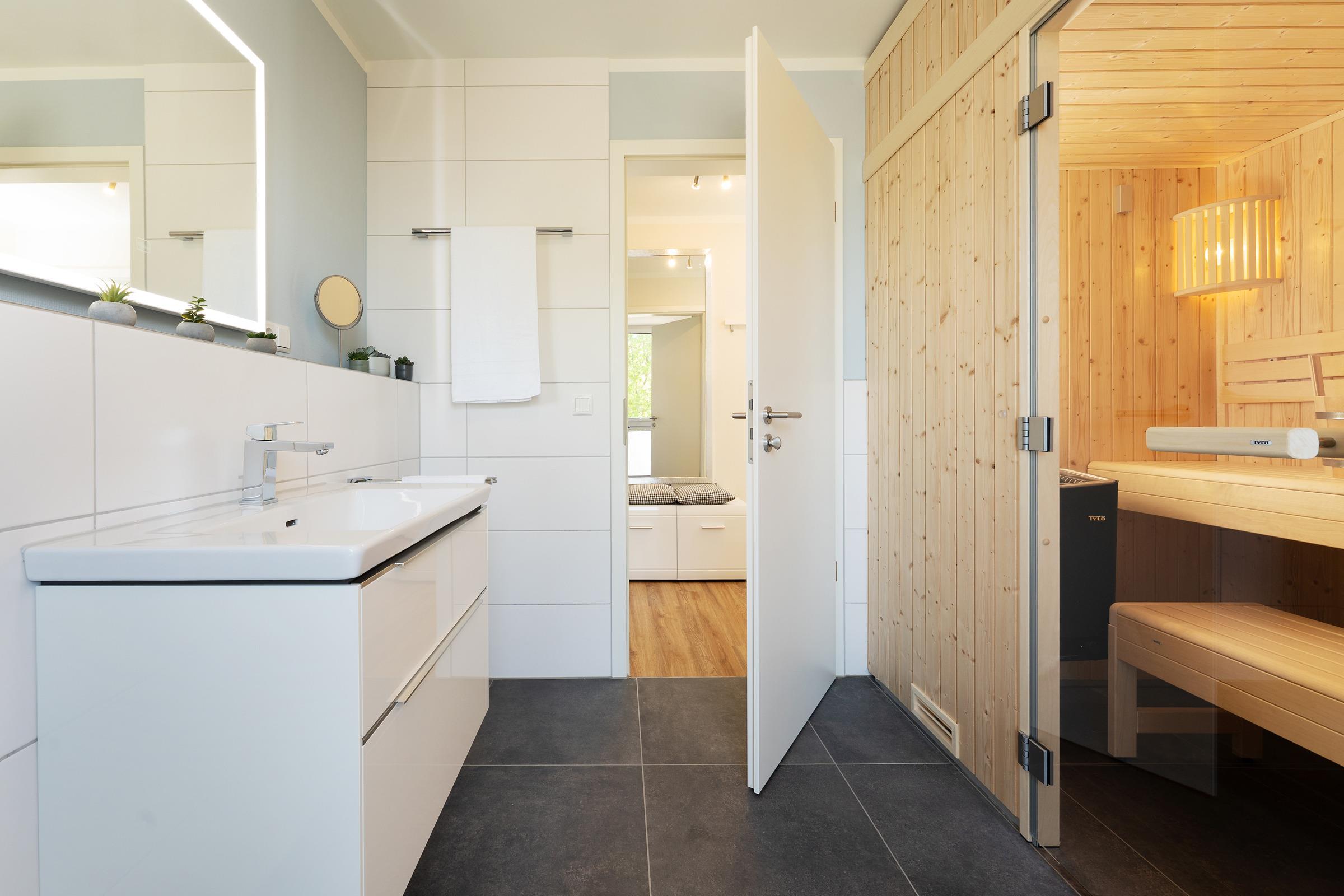 Das Badezimmer ist modern gestaltet und ein echtes Highlight für Wellness-Fans: neben der bodengleichen Dusche und Fußbodenheizung finden Sie hier eine Sauna vor. Der Erholungsfaktor ist hier garantiert! Eine Waschmaschine in der Abstellkammer ist ebenfalls vorhanden.