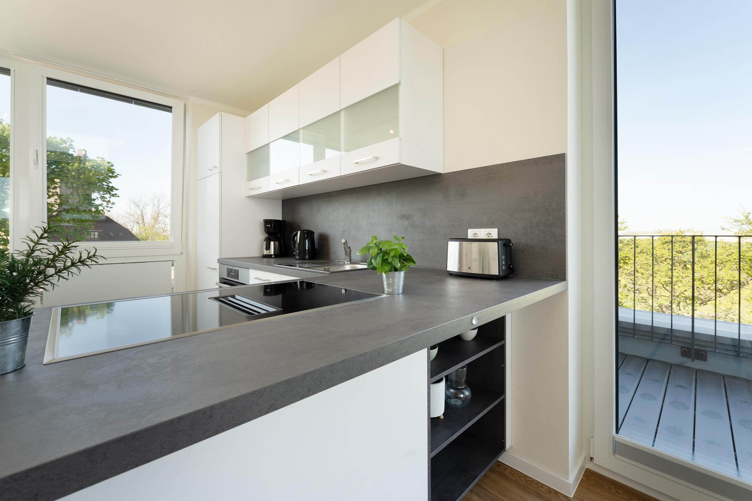 Von hier aus gelangen Sie auf die großzügige Dachterrasse mit einem wunderschönen Ausblick und nordwestlicher Ausrichtung. Terrassenmöbel und ein Elektrogrill stehen Ihnen zur Verfügung, sodass Sie den Tag bei einem gemeinsamen Essen im Freien ausklingen lassen können.