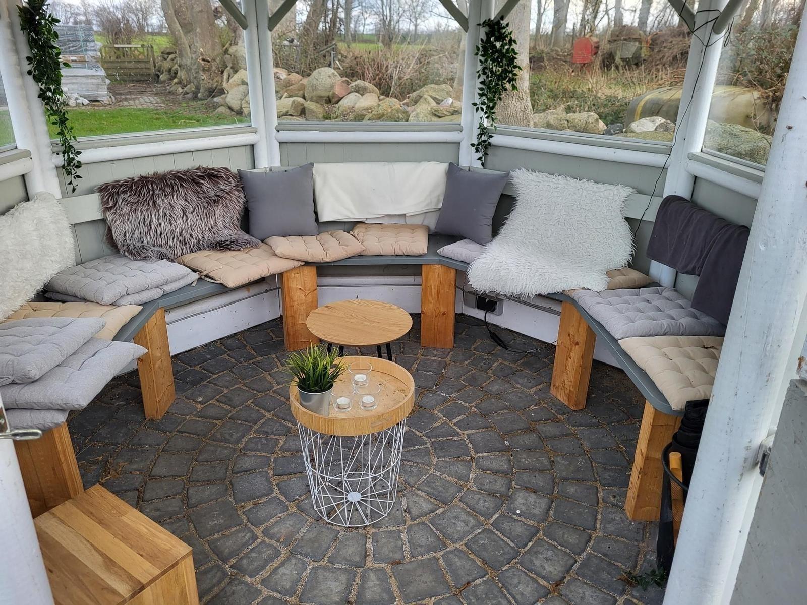 Der idyllische Garten verfügt über einen eingezäunten Teich, einen entzückenden Pavillon der auch bei schlechtem Wetter zum sitzen und genießen einlädt und auf der Terrasse stehen Gartenmöbel.
