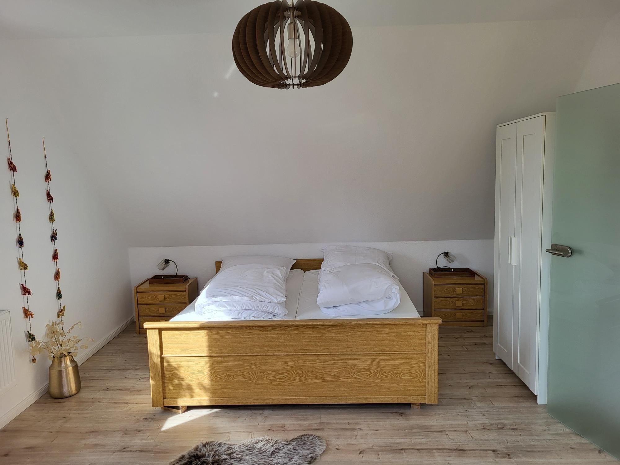 Im Obergeschoss befinden sich zwei weitere Schlafzimmer, in einem steht eine Schlafcouch für zwei Personen, in dem anderen Schlafzimmer befindet sich ein Doppelbett.