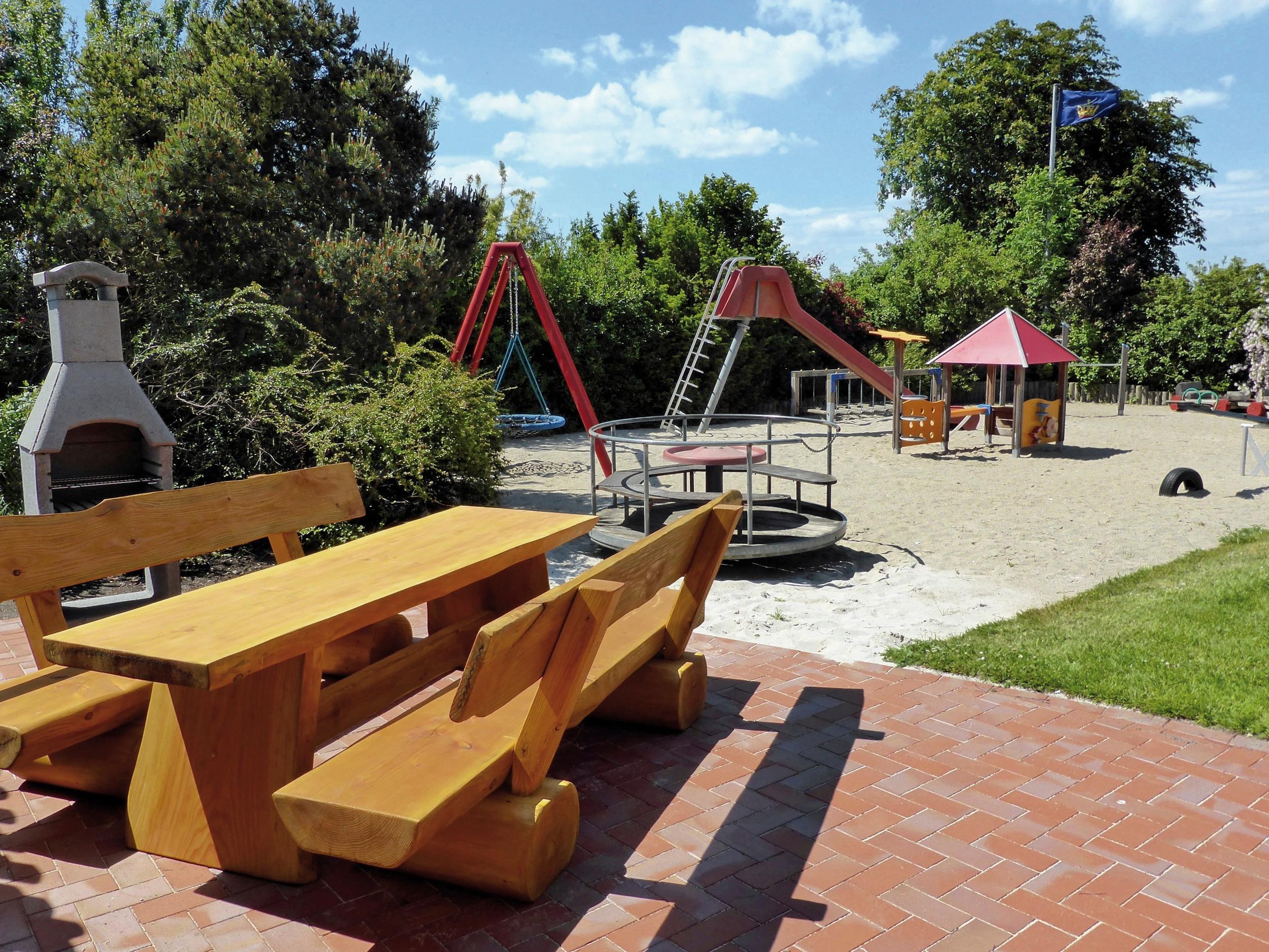 Viel Freiraum zum Spielen ist auf der Wiese am Haus mit dem großzügig angelegten Spielplatz.