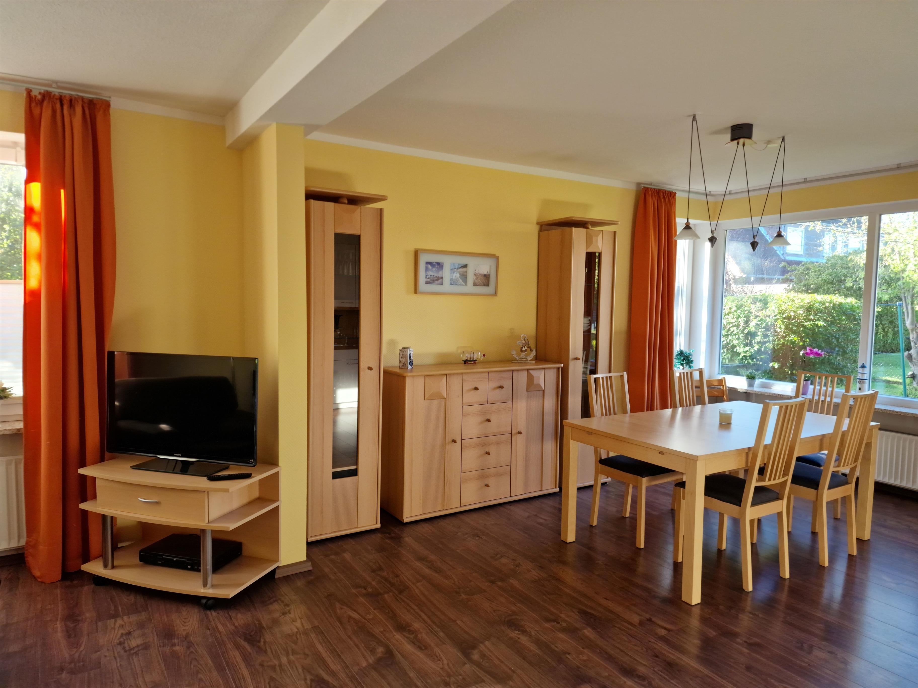 Sie liegt im Erdgeschoss und verfügt über einen großzügigen Wohnbereich, in dem ein Esszimmer und Küchenzeile integriert ist und es ausreichend Platz für 6 Personen gibt.