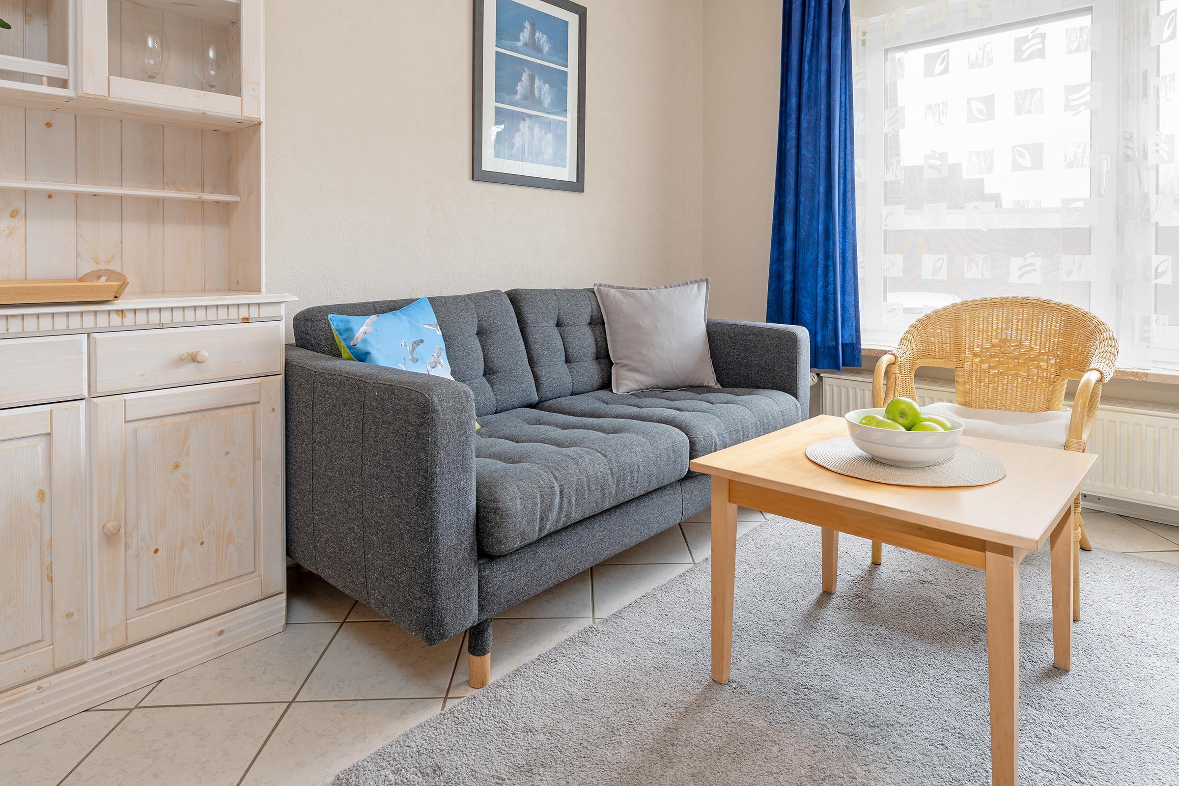 Auf Fehmarn im Ortsteil Neue Tiefe: Die gemütliche 2-Zimmer-Ferienwohnung im Hochparterre bietet auf 35 m² Platz für bis zu 4 Personen.