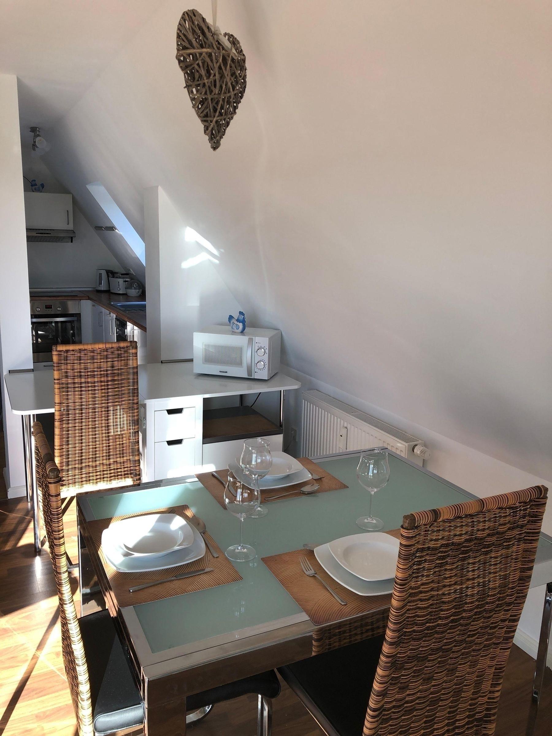 Diese traumhafte Wohnung besticht mit ihrer durchdachten Aufteilung: Mit dem lichtdurchfluteten Wohnbereich inklusive gut ausgestatteter Küche hat Ihr Zuhause auf Zeit alles, was Sie für einen erholsamen Urlaub benötigen. Das Wohnzimmer besitzt eine große Balkontür mit zwei Flügeln und bietet einen wundervollen Blick über die Felder bis hin zum Yachthafen, Hafeneinfahrt Burgstaaken und dem Burger Binnensee. Bei gutem Wetter können Sie sich auf dem großen Holzbalkon erholen und den Tag ausklingen lassen. Das Grillen mit einem Elektrogrill ist hier erlaubt. Erholsamen Schlaf finden Sie in den beiden separaten Schlafzimmern, in einem steht ein Doppelbett, in dem anderen ein Einzelbett. Das moderne, tageslichthelle Badezimmer punktet mit einer Dusche und einer Badewanne. Die Wohnung liegt zentral zwischen dem Südstrand sowie der Stadt Burg direkt am Ortseingang von Neue Tiefe. Das Handwerkerhaus aus dem Jahr 1955 fällt mit seinem Flair und der modernen Optik gleich ins Auge.