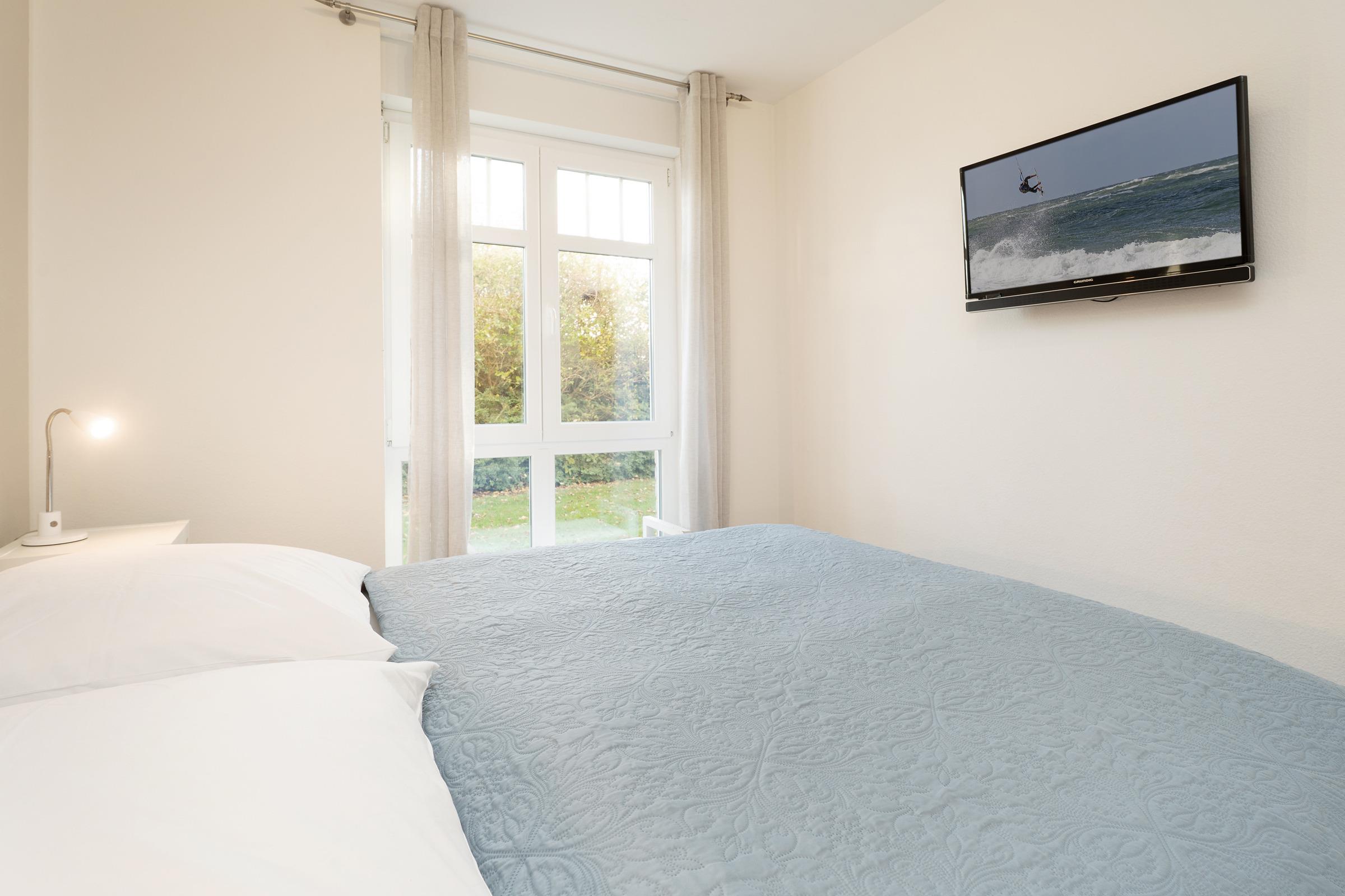 Schlafzimmer 1: Boxspring-Doppelbett (ca. 180x200 cm), Kleiderschrank, TV