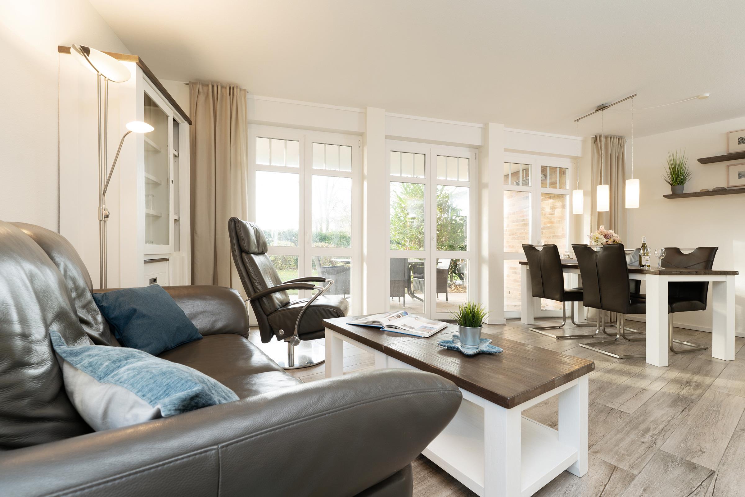 Direkt am Burger Binnensee: zauberhafte 3-Zimmer-Ferienwohnung im Erdgeschoss mit Terrasse und einer Wohnfläche von ca. 60 m² für bis zu 4 Personen.