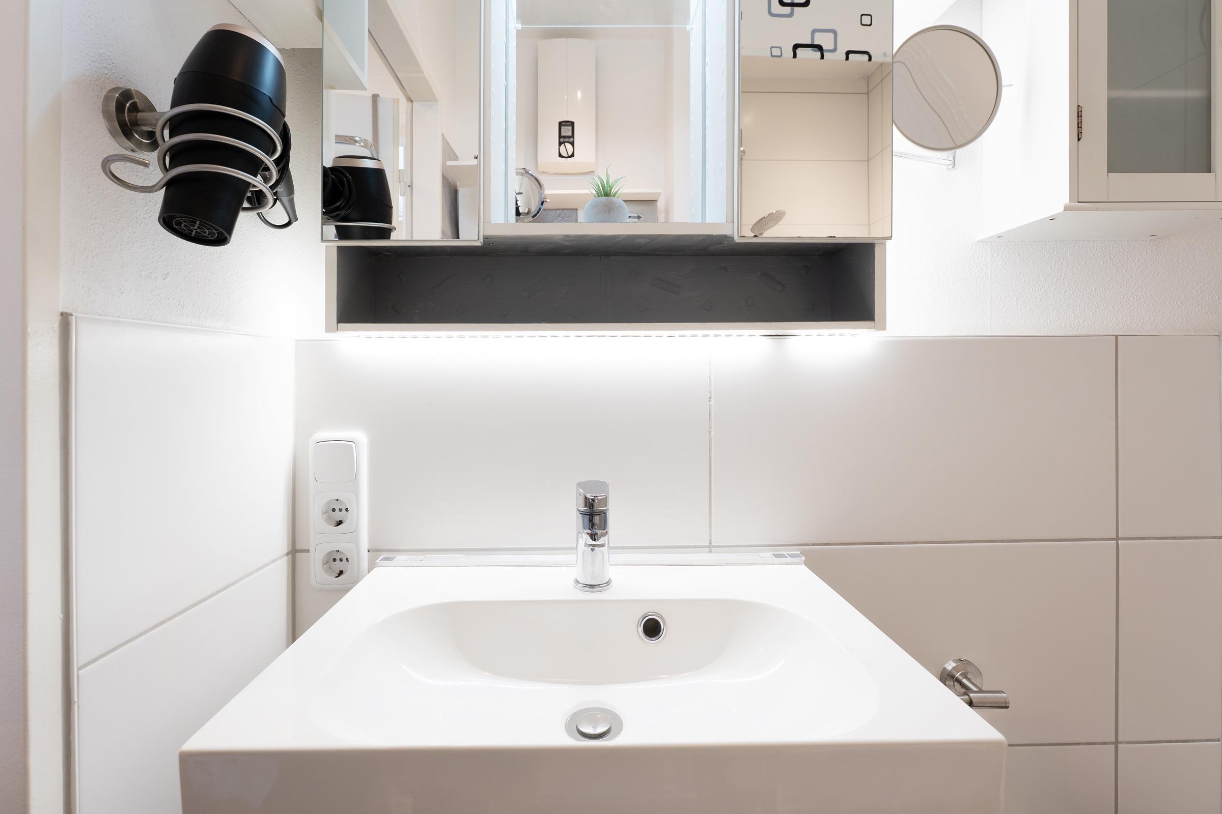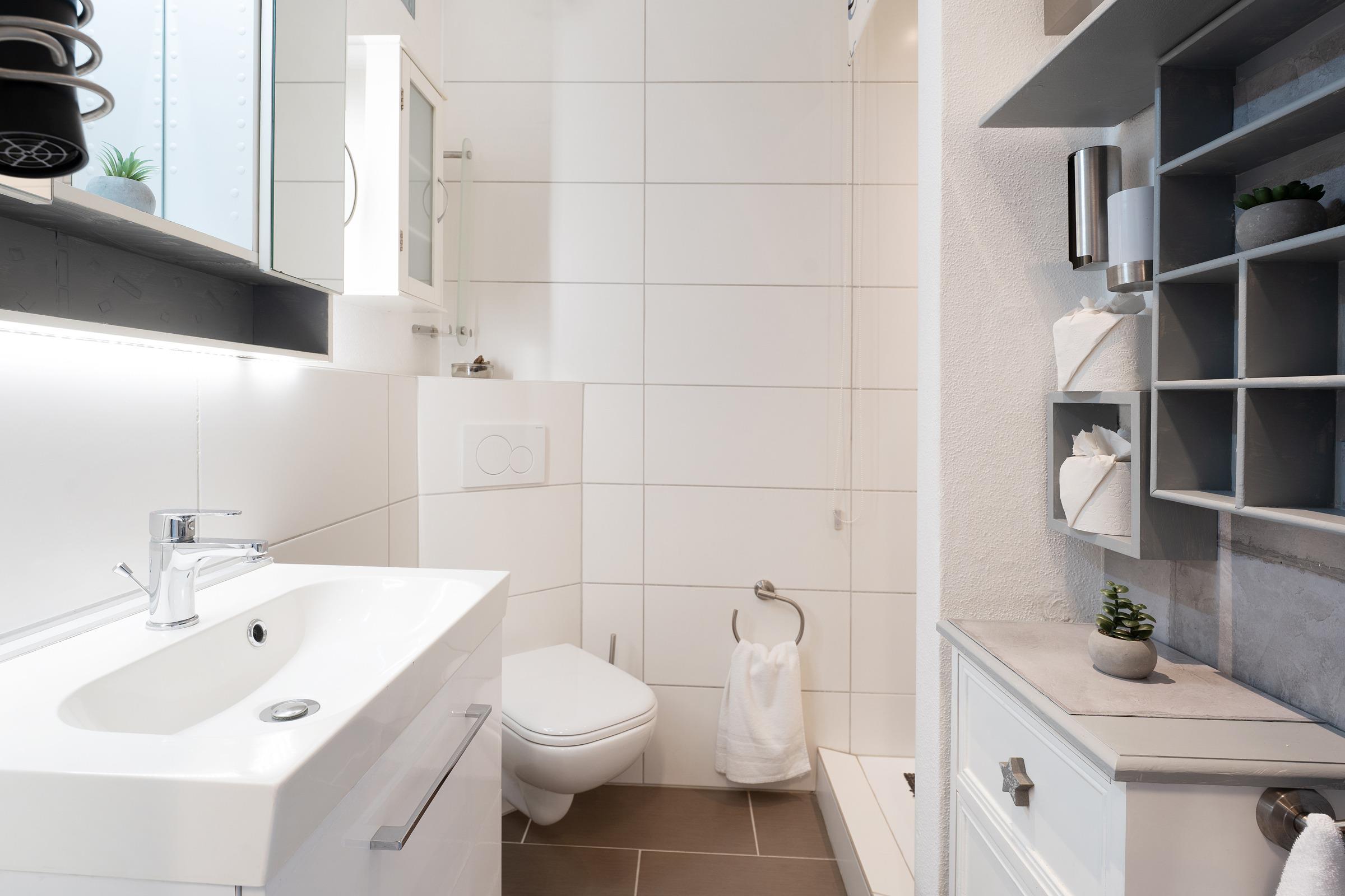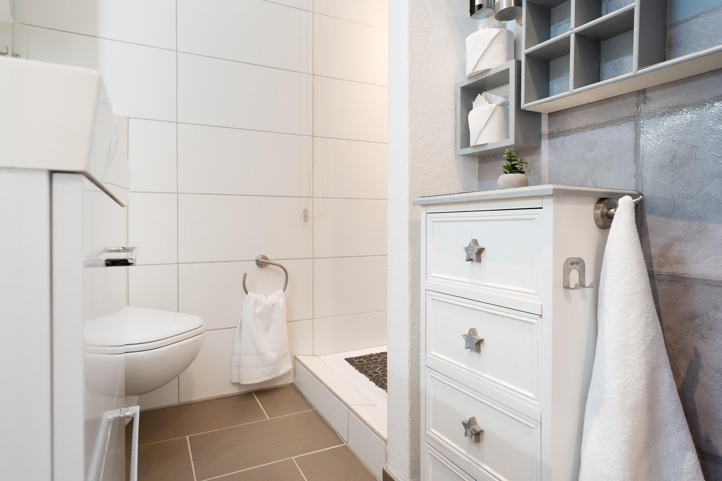 Der helle Wohnbereich lädt mit gemütlicher Sitzecke, Fernseher und Kaminofen zu entspannten Stunden ein. Von hier aus gelangen Sie auf die möblierte Terrasse, die mit Gartenmöbeln und Strandkorb ausgestattet ist und zum Verweilen im Freien einlädt. Die offene Küchenzeile verfügt über moderne Geräte wie Backofen, Geschirrspülmaschine, Kühlschrank, Backmikrowellenkombination, Kaffeepadmaschine und ermöglicht eine komfortable Selbstverpflegung. Im angrenzenden Essbereich finden alle Gäste ausreichend Platz für gemeinsame Mahlzeiten. Das separate Schlafzimmer ist mit einem komfortablen Doppelbett eingerichtet und verspricht erholsame Nächte. Zusätzlich steht im Wohnbereich ein Schlafsofa zur Verfügung. Das Badezimmer ist modern ausgestattet und bietet eine Dusche für die Erfrischung am Morgen.