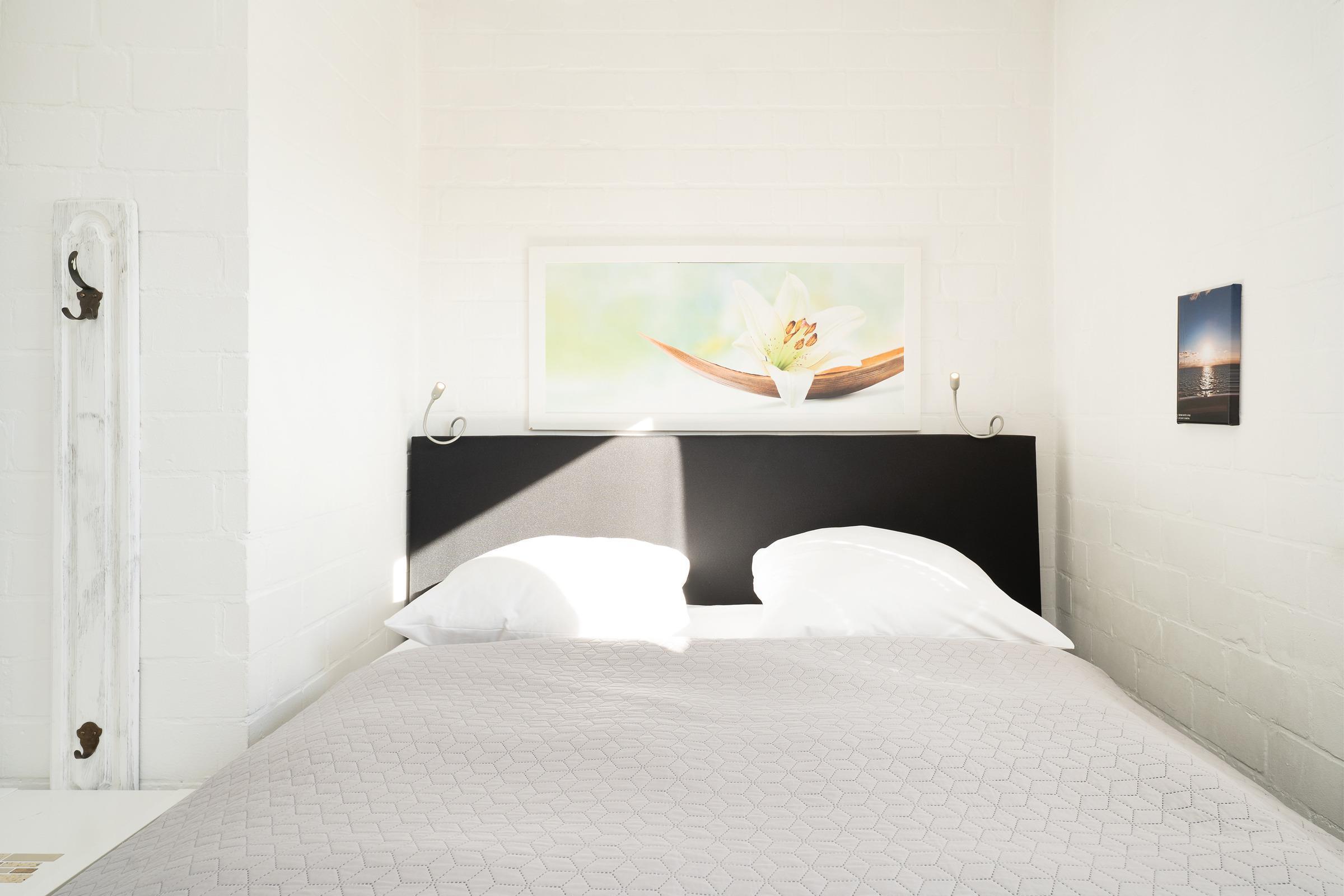 Schlafzimmer : 1 Boxspringbett mit durchgehendem Topper (180 x 200 cm), Kleiderschrank, TV, Verdunkelung: elektrische Rollladen, Platz für ein Babybett vorhanden