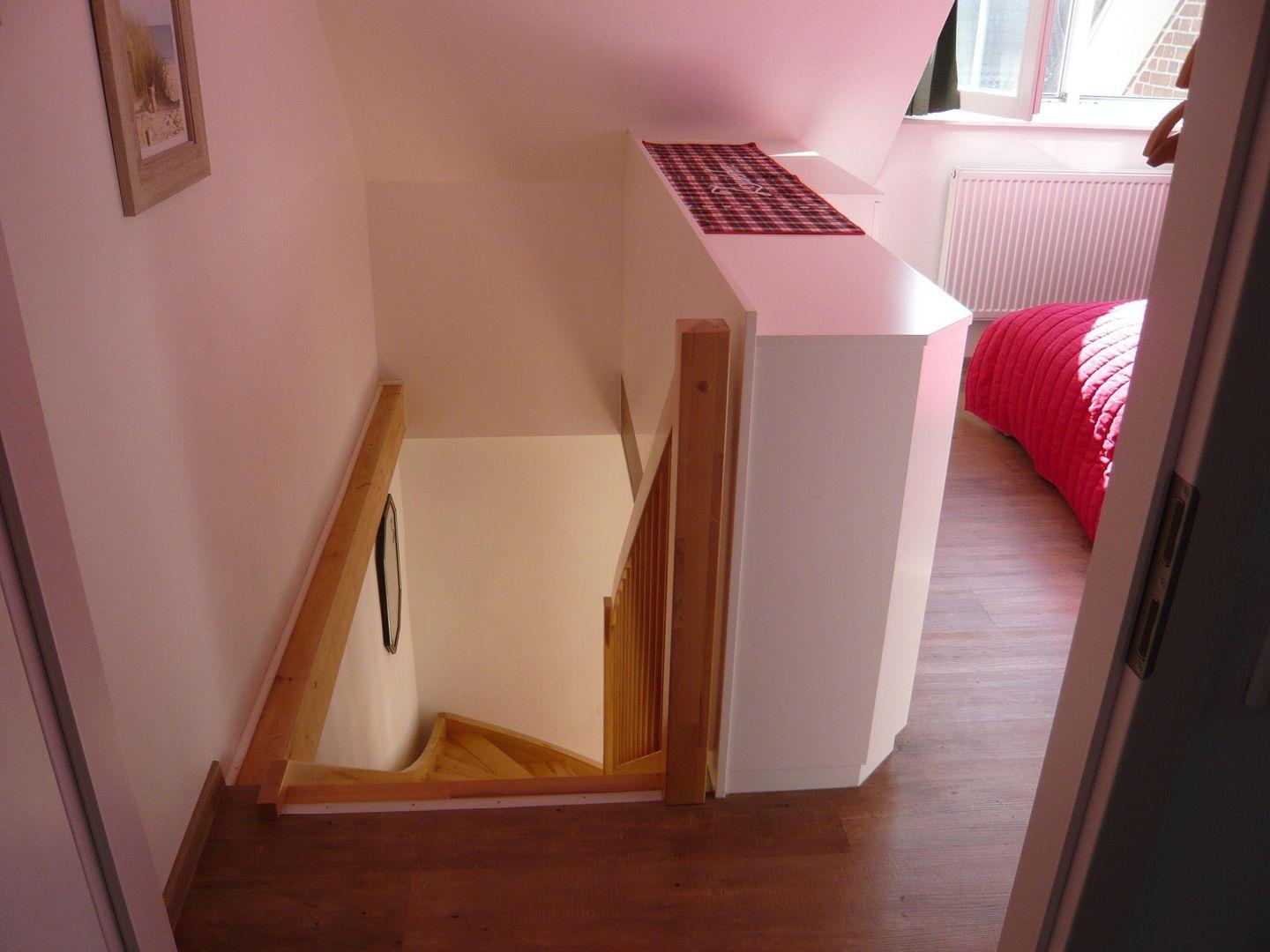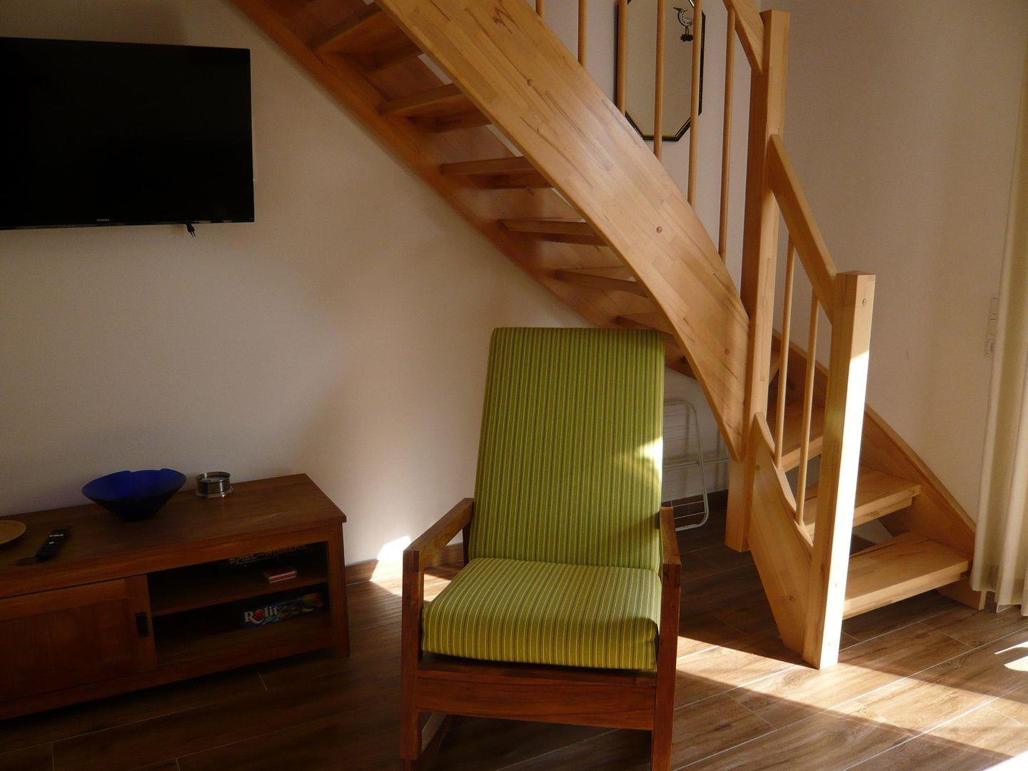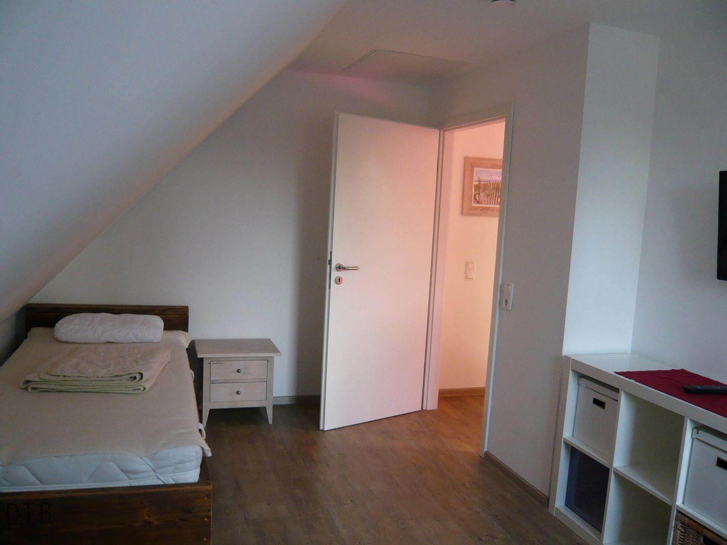 ist sehr geschmackvoll eingerichtet und verfügt zusätzlich über eine Leseecke. Im Außenbereich finden Sie Ihren KFZ-Stellplatz und eine Terrasse zum verweilen. Im gesamten Bereich ist W-lan vorhanden. Das Elternschlafzimmer oben ist mit dem 2. Schlafzimmer durch eine Tür getrennt. Nach unten zum Wohnzimmer ist der Bereich durch eine offene Treppe getrennt. Die Wohnung lässt sich