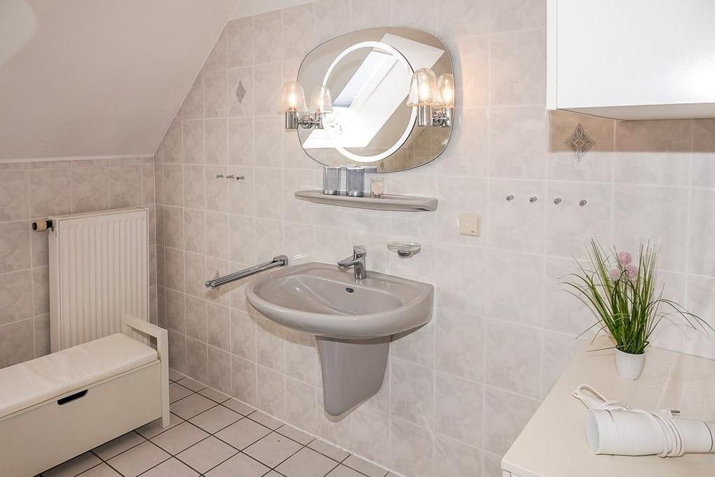 Im großen Badezimmer gibt es eine Badewanne und eine Duschwanne.