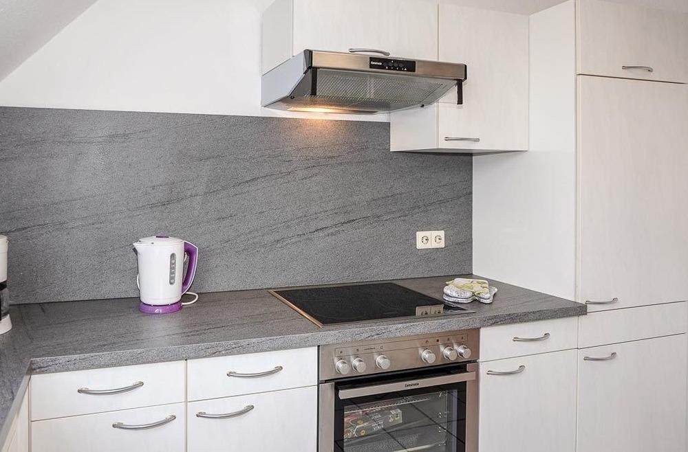 Die separate moderne Küche ist komplett ausgestattet u.a. mit Spülmaschine, Mikrowelle, E-Herd mit Ceranfeld und Backofen, Kühlschrank mit Gefrierfach und alle weiteren E-Geräte.