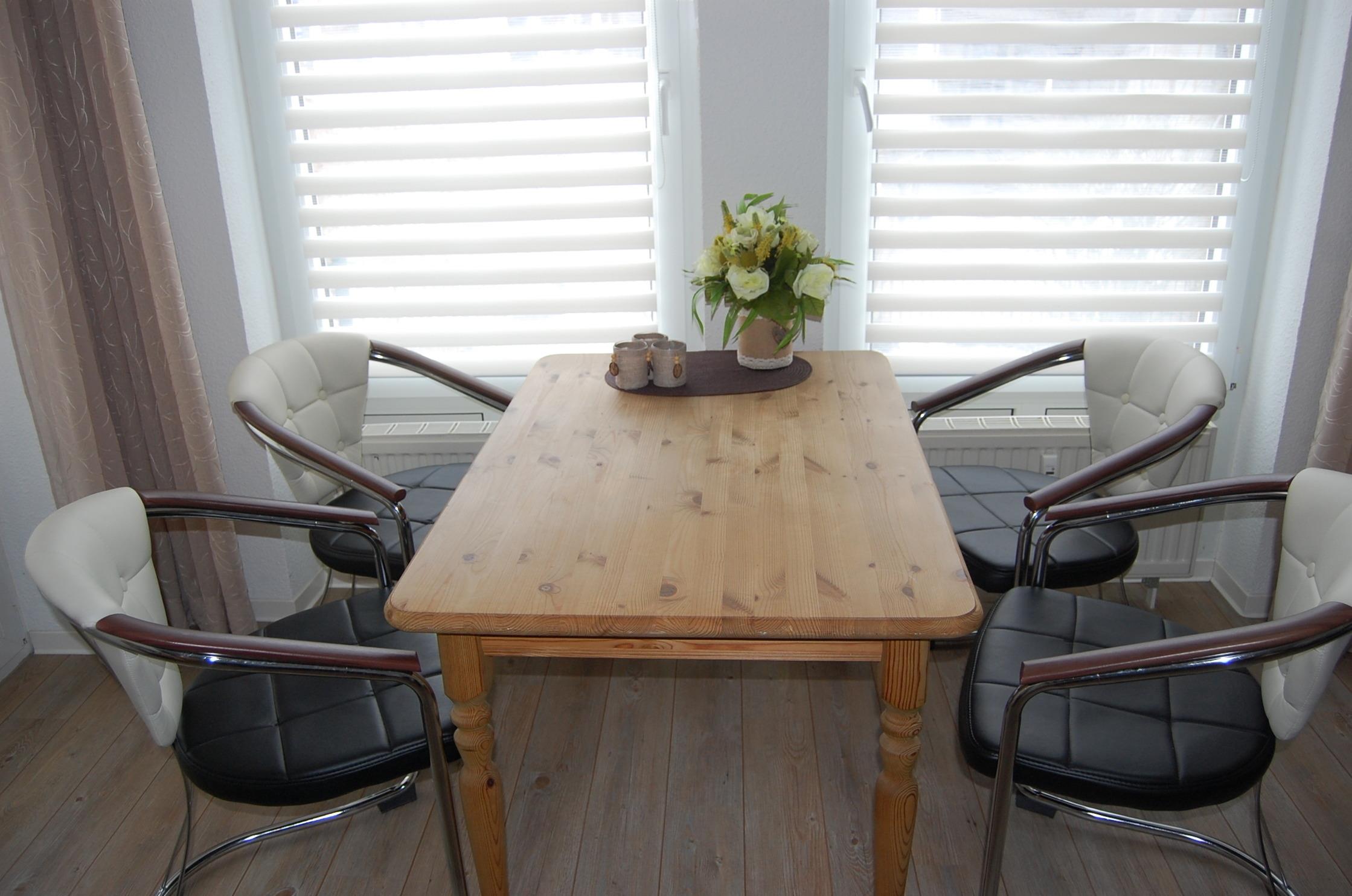 Am Fenster steht der Esstisch der zum gemütlichen Verweilen einlädt.