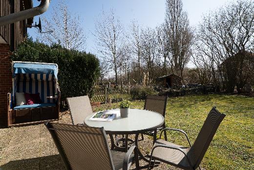 Gemütliche Ferienwohnung mit Terrasse, Garten und Kaminofen in Fehmarn OT Petersdorf, ideal für erholsame Ostseeurlaube.