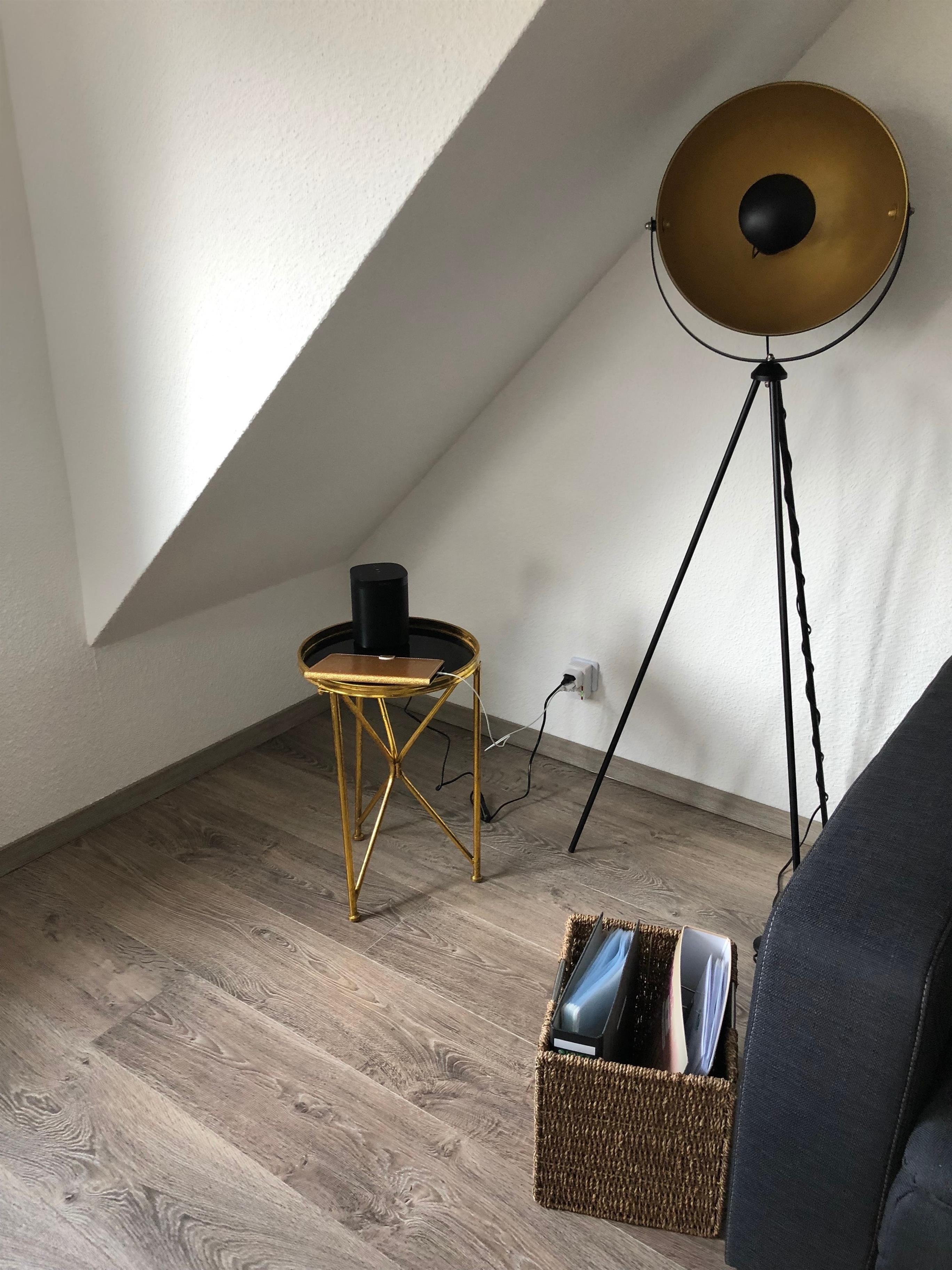 Nach dem Eintritt in die Wohnung gelangt man über einen kleinen Flur sowohl in das neu renovierte, mit Fußbodenheizung ausgestattete Badezimmer, als auch in das geräumige Wohn- / Esszimmer. Auch die modern ausgestattete Einbauküche lädt nicht nur zum Kochen, sondern auch zum Verweilen ein. Ein hübscher Tisch mit zwei Stühlen sorgt hier für die entsprechende Gemütlichkeit. Auf dem Balkon, der über das Wohnzimmer zu erreichen ist, kann man den Nachmittag ausklingen lassen oder mal eine Zigarette rauchen. Bei Regen besteht für die Raucher die Möglichkeit, vor der Haustür an einem kleinen Tisch, geschützt durch den Laubengang ihrem Genuss nachzugehen.