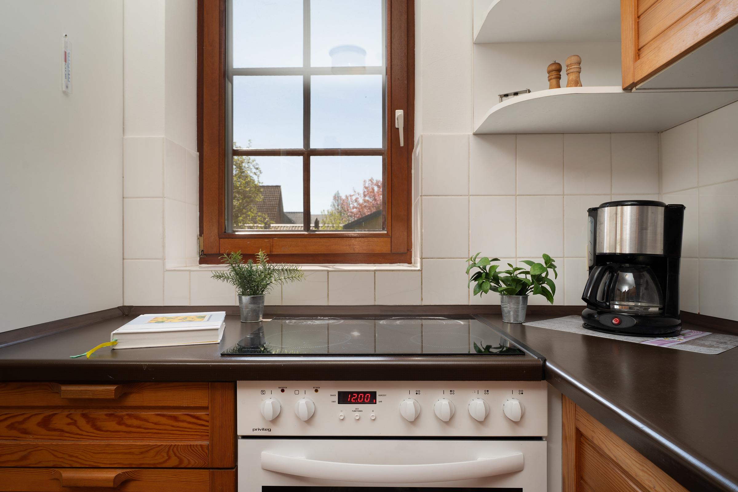 Die geschlossene Küche bietet alles, was das Herz begehrt, so geht das Kochen im Urlaub leicht von der Hand. Am angrenzenden Essplatz können Sie gemeinsam frühstücken oder den Tag bei einem leckeren Abendessen ausklingen lassen.