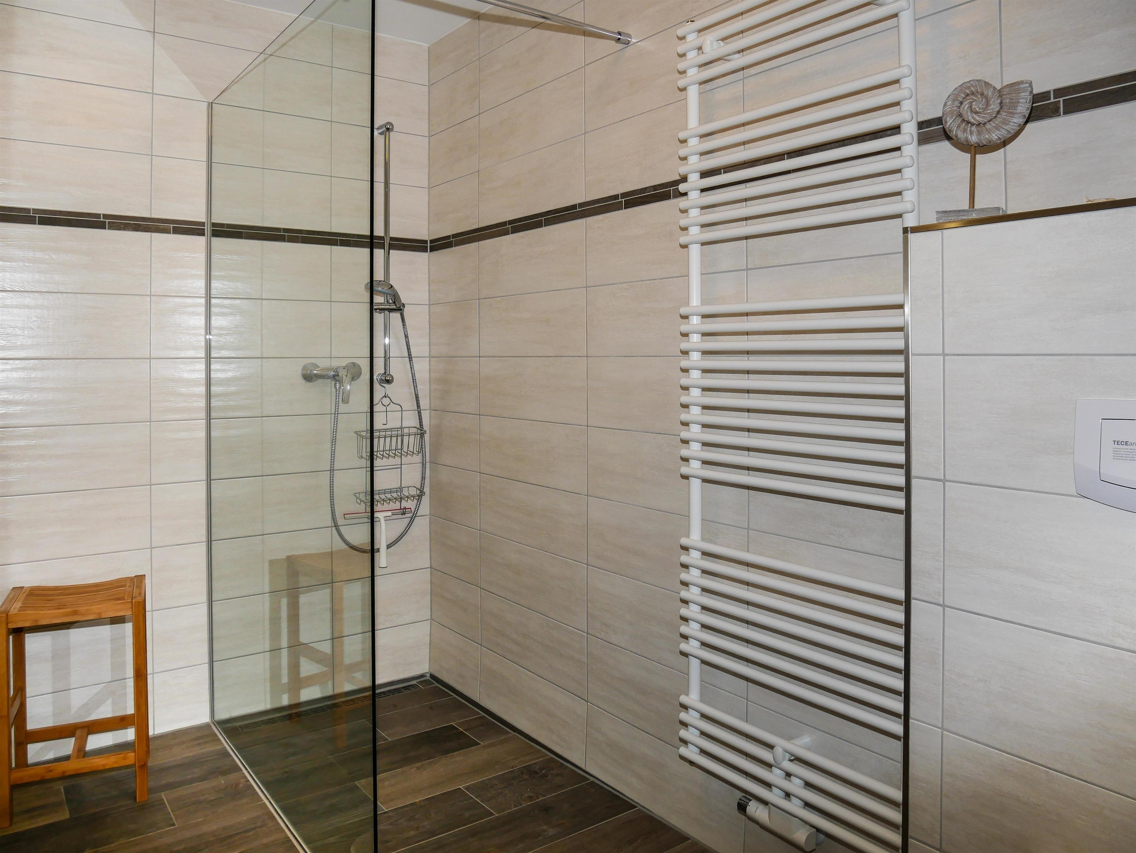 -Das Badezimmer im EG ist barrierefrei mit ebenerdiger Dusche